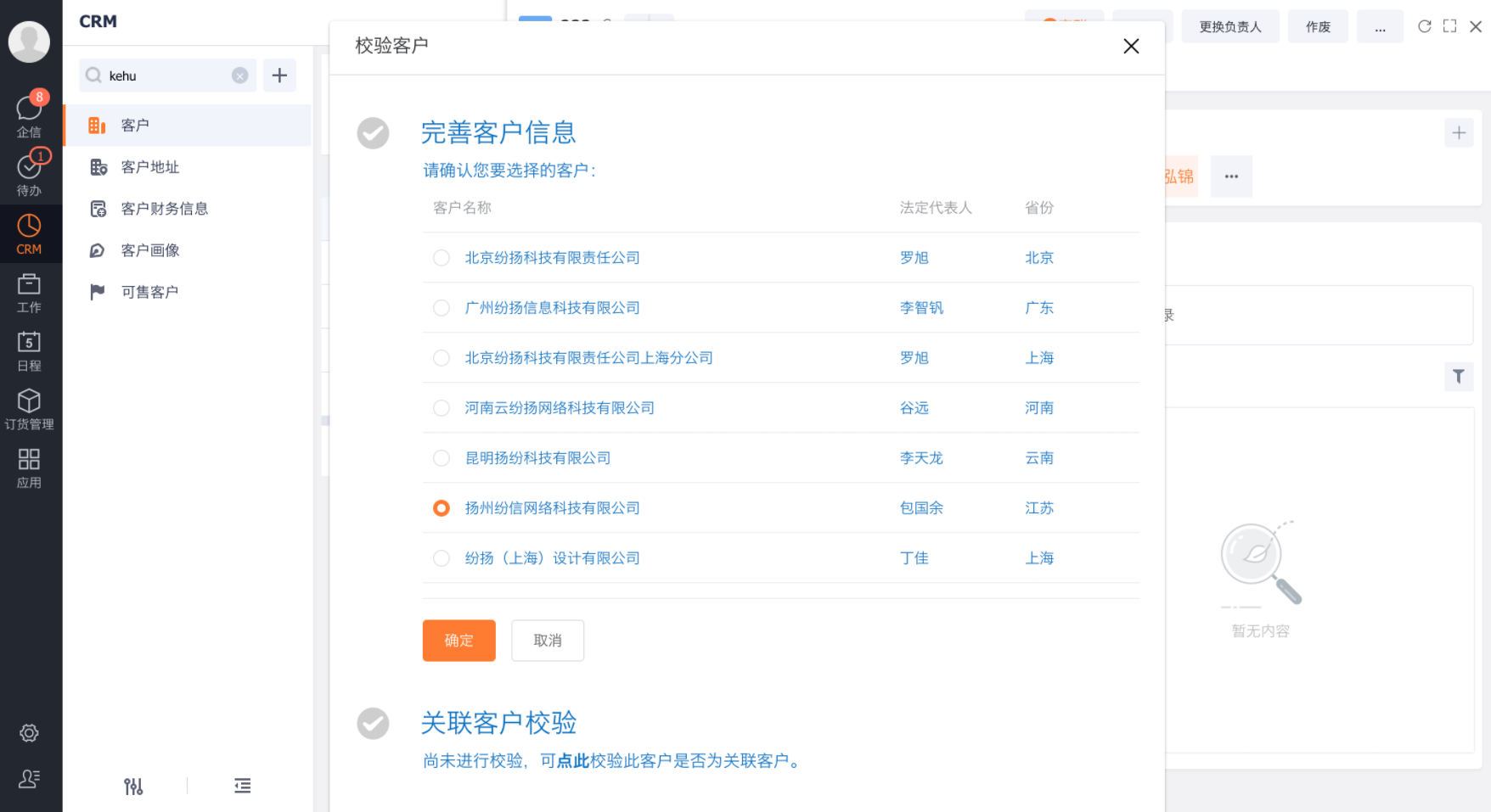 1. 需求描述:用户在CRM系统当中,能够查询该客户在企查查上的完整数据,并将查询后的结果保存到系统当中。2. 实施企业:旷视科技有限公司3. 实施方案: