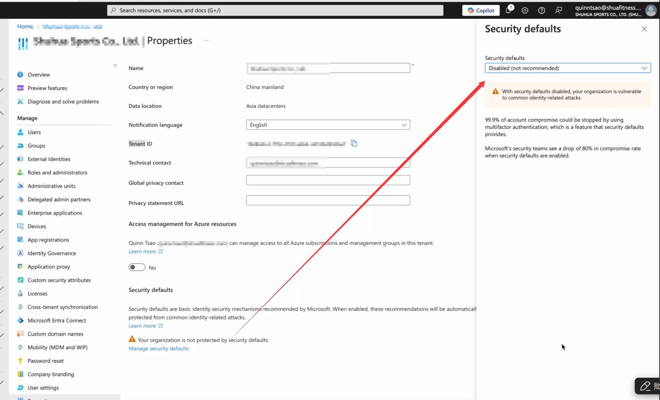 1、在Azure门户,导航搜索至 Microsoft Entra ID > 属性