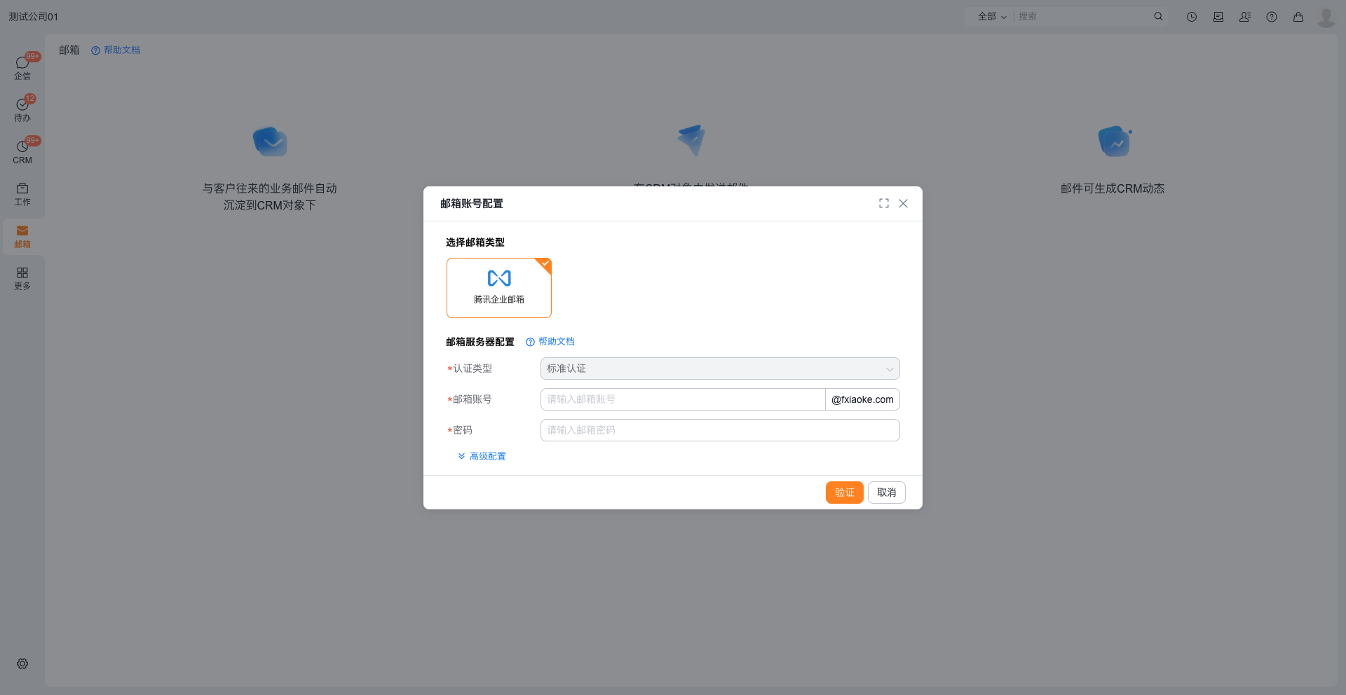 2. 绑定QQ邮箱:在纷享销客中使用QQ邮箱授权码进行验证(不是原邮箱密码),绑定邮箱等同于“第三方客户端收信”。