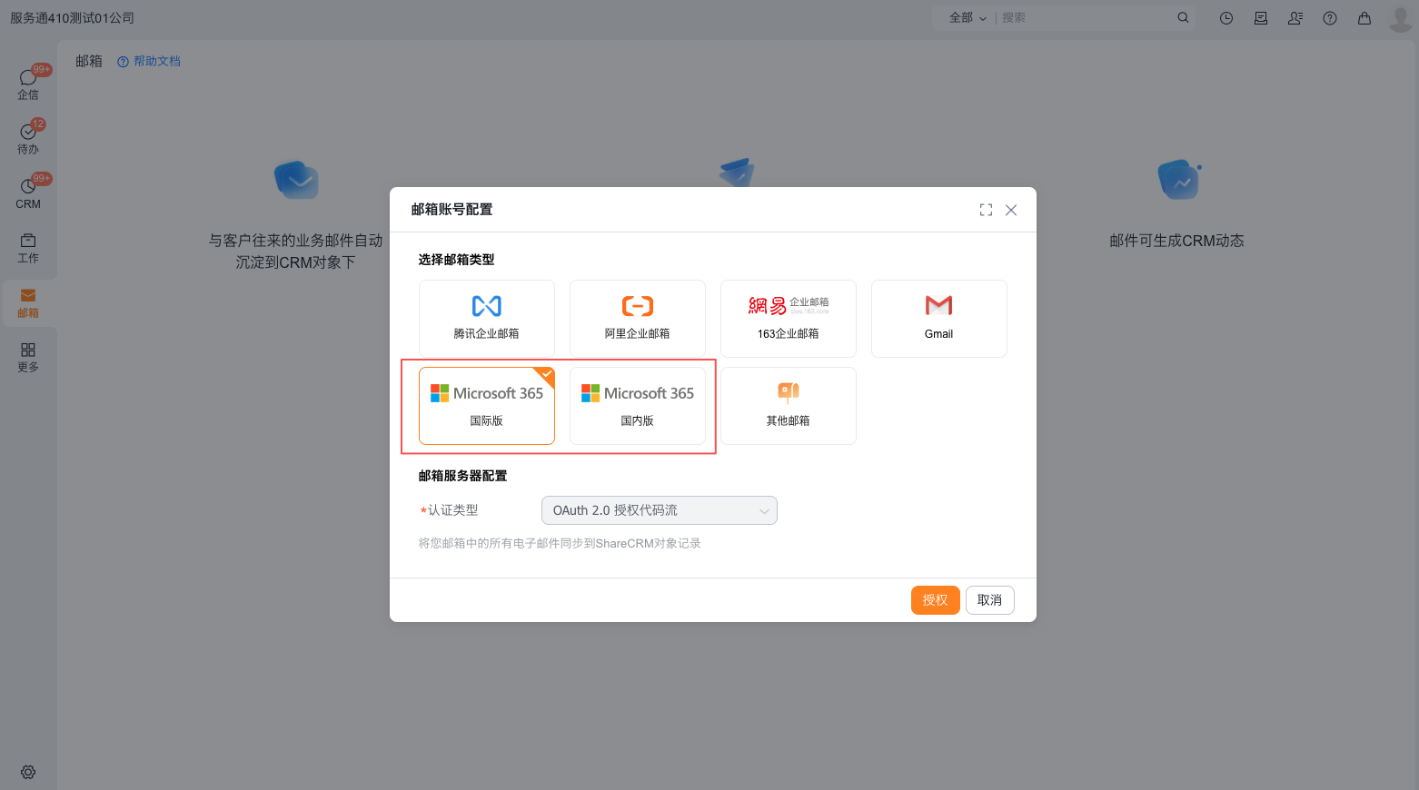 纷享销客邮箱应用已经支持Microsoft 365 OAuth2.0授权码流,员工只需要登录Microsoft 365邮箱账号即可完成绑定。