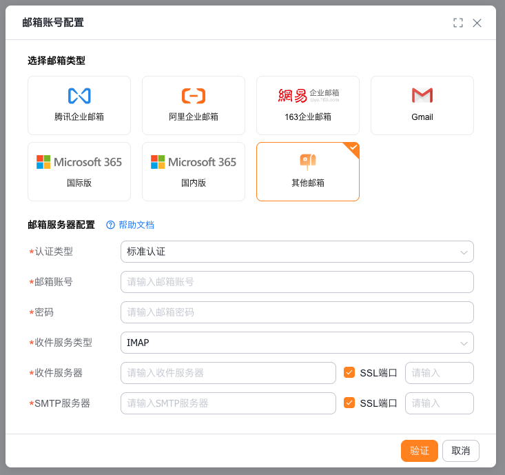 邮箱账号设置-选择邮箱类型