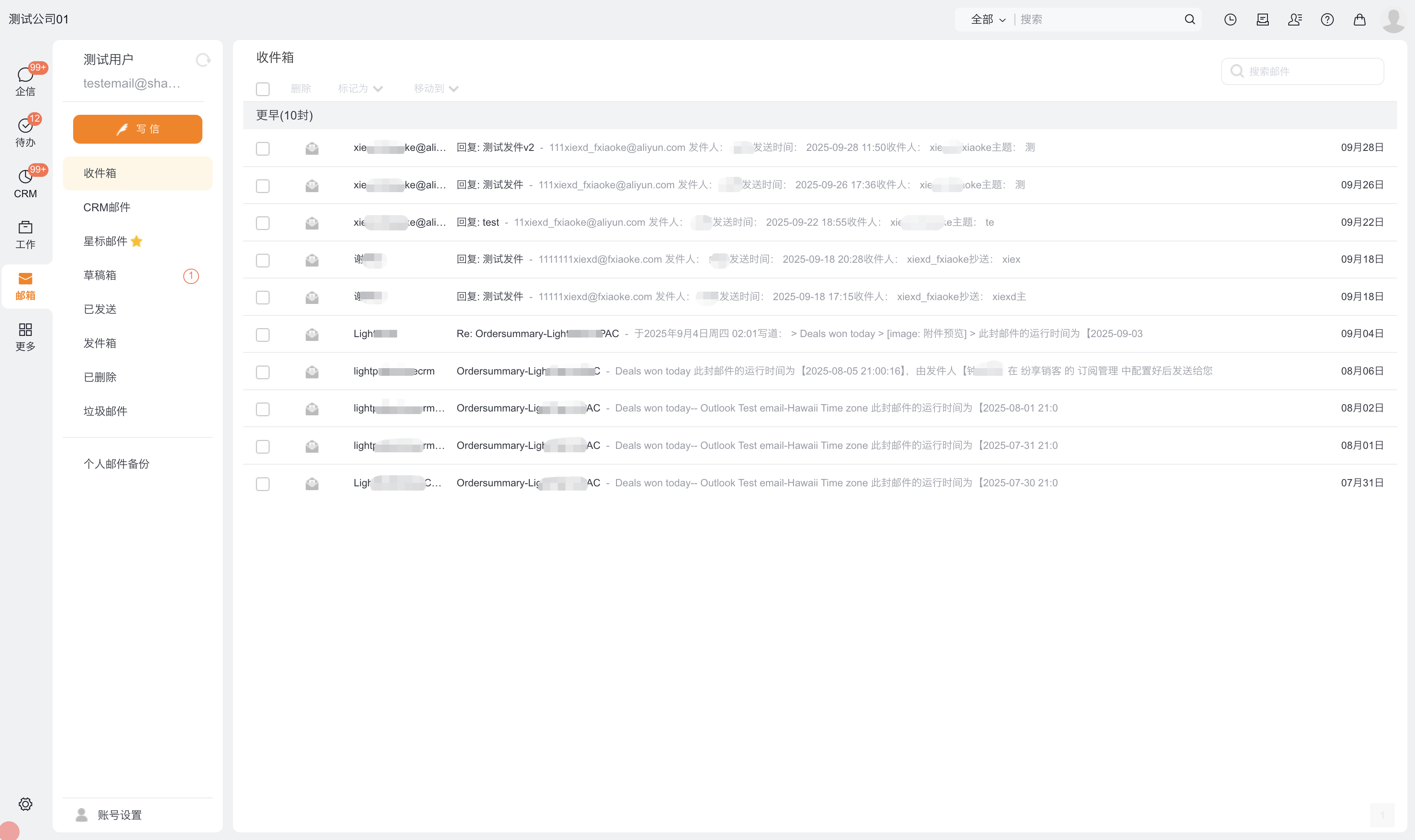 注意:完成邮箱绑定进入邮件首页,由于从邮件服务器获取邮件需要时间,如果您看到收件箱的邮件列表为空,请不要担心。您可以先处理其他工作,过几分钟后再进入收件箱就可以看到邮件。