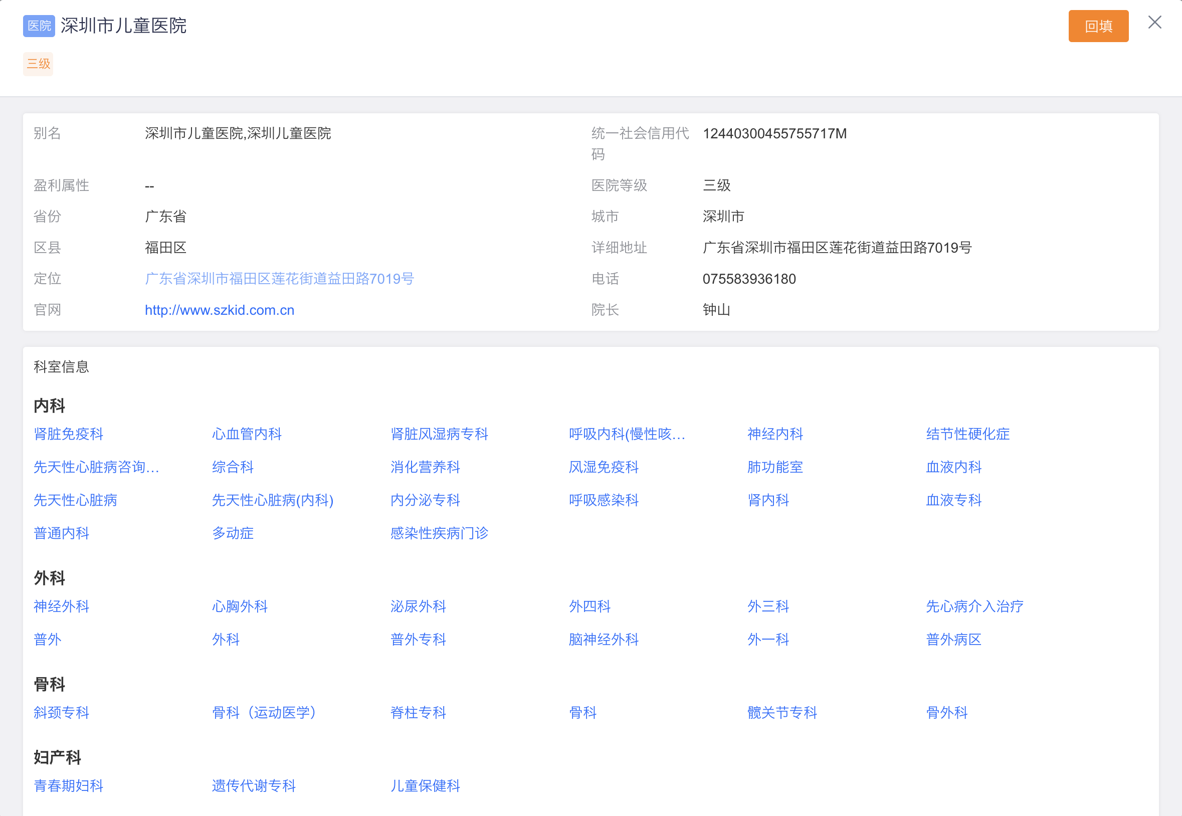 如配置了自动回填,则将按映射规则自动回填字段,也可以点击医疗详情页的「回填」操作,进行手动回填。