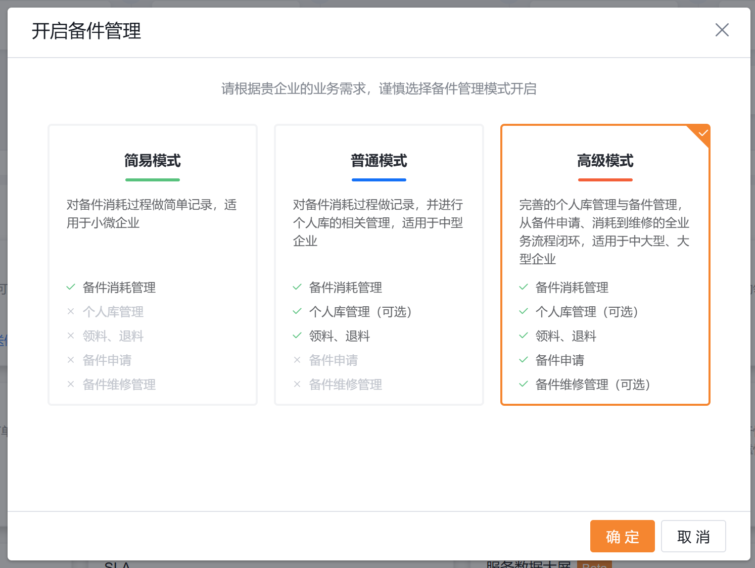 3.2 开启备件管理高级模式