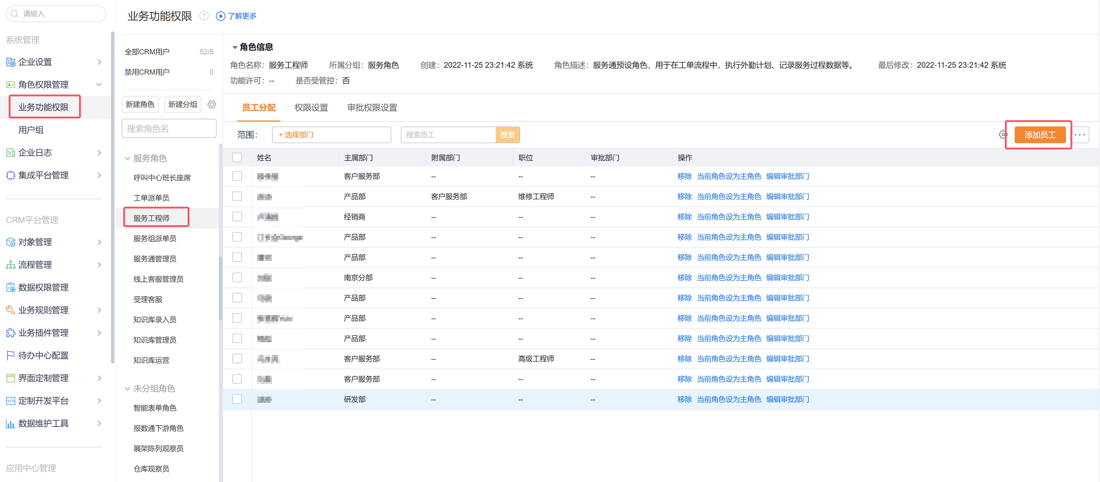 核心角色包括:备件管理人员、服务工程师