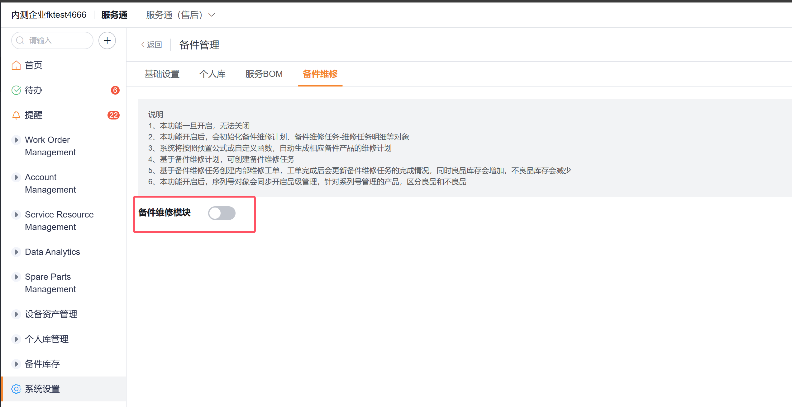 3.13 启用备件维修模块