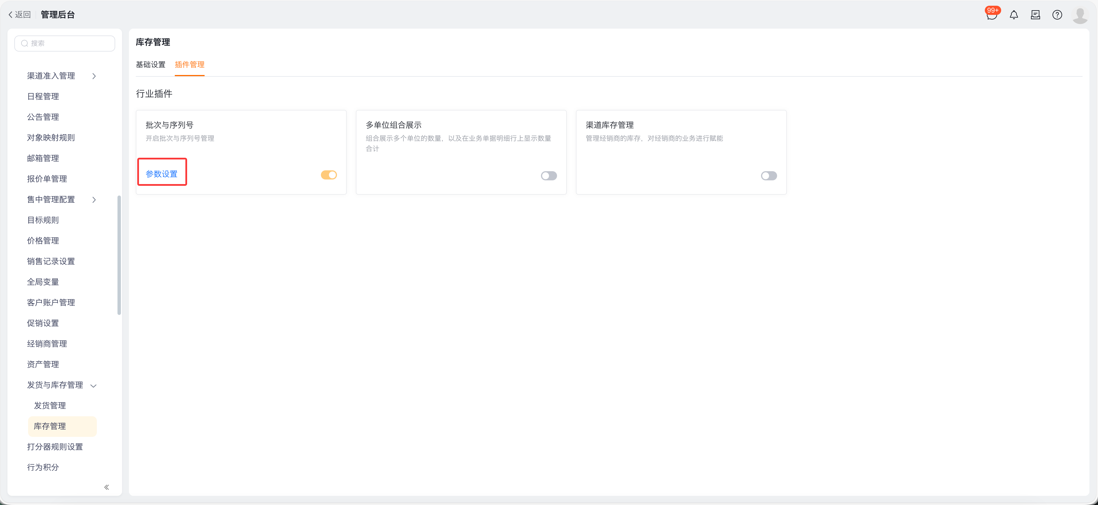 - 无论开启的是完整版(A类)进销存,还是开启的对接版(B类)进销存,均可开启批次与序列号管理插件。