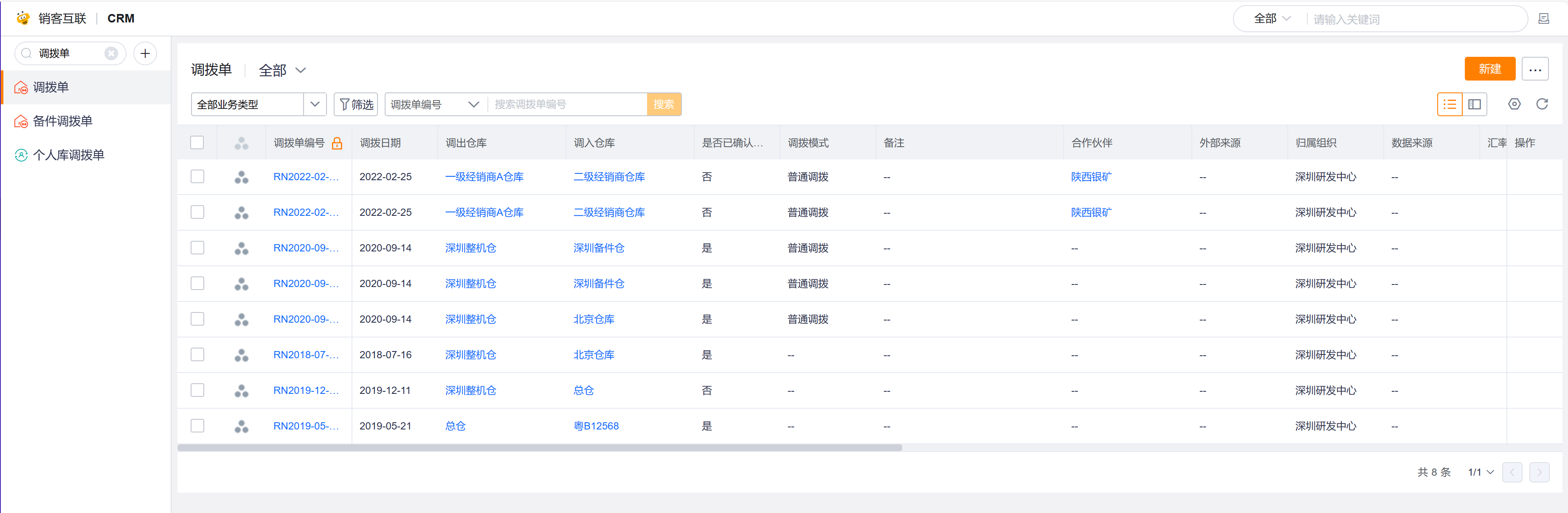 - 进入CRM,点击调拨单,进入调拨单列表页。