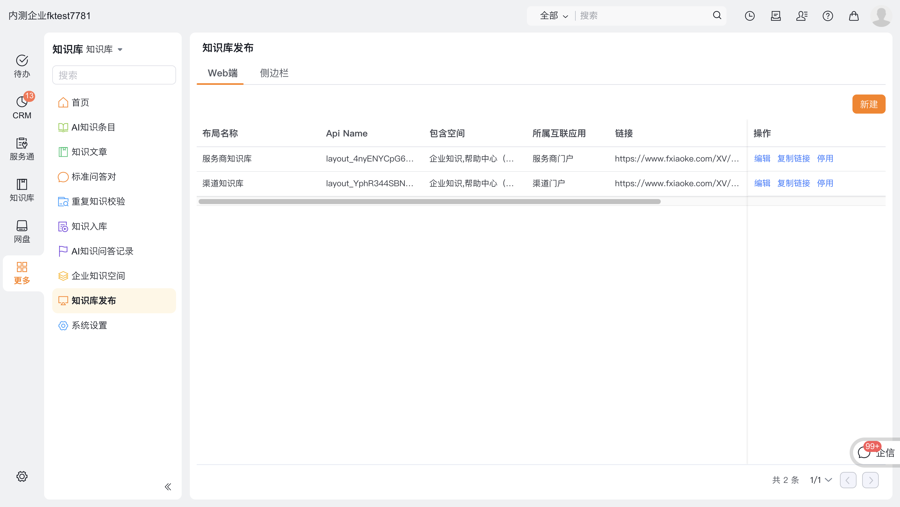 一、厂商可将知识库发布到互联应用或站点