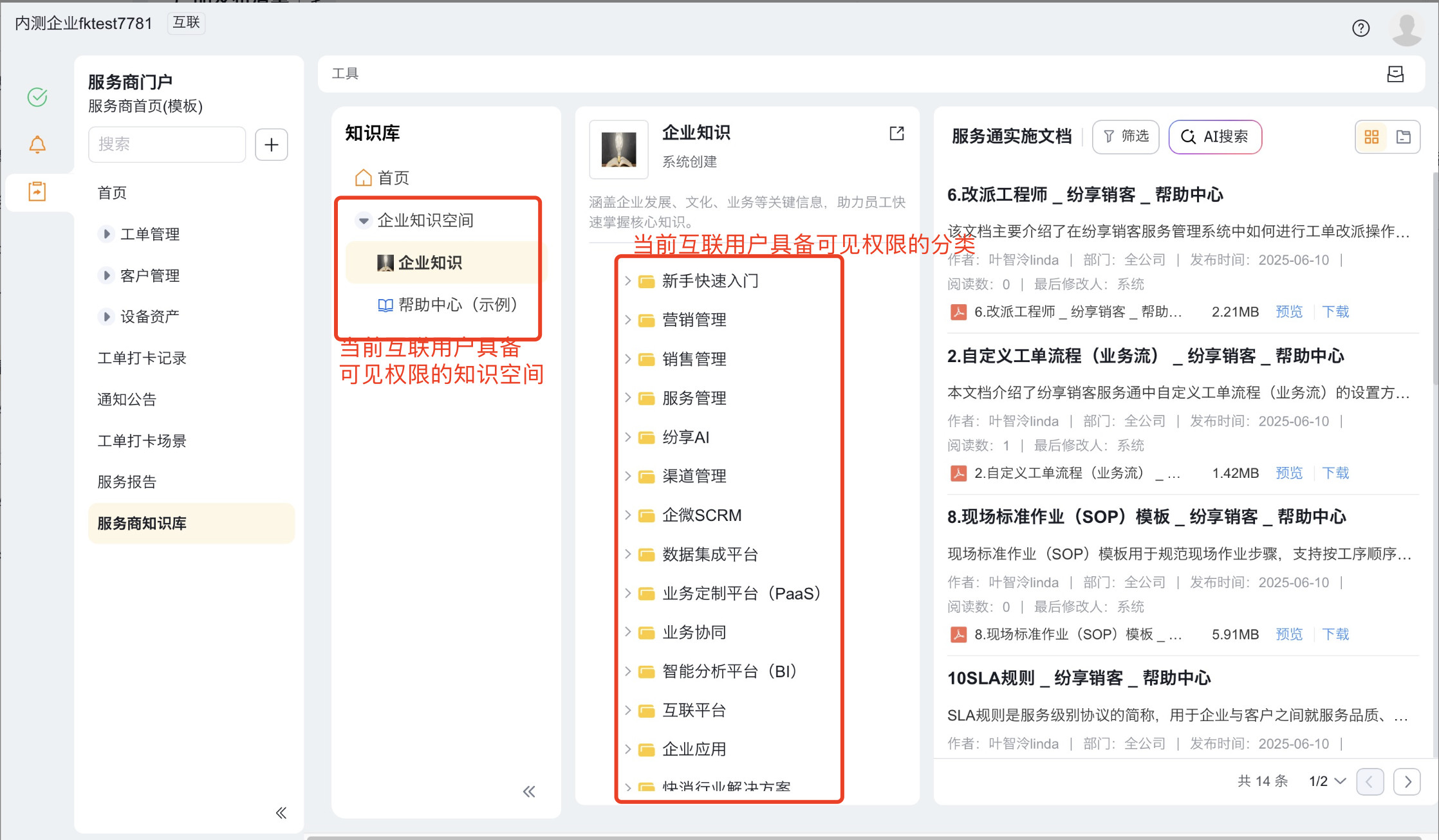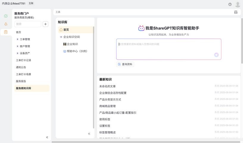 3、服务商等渠道用户进入到互联应用中,即可访问知识库