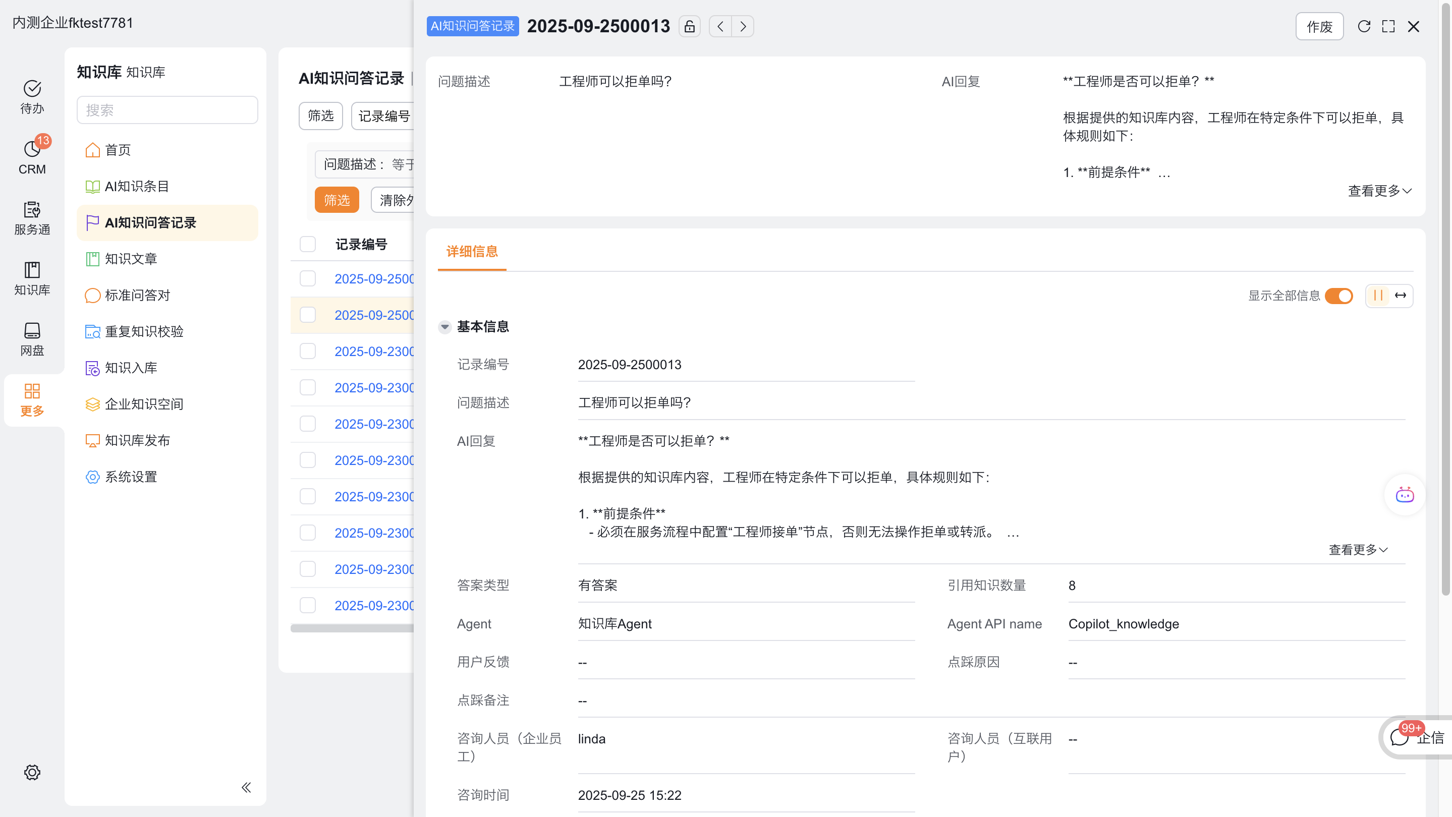 AI知识问答记录功能,实现随时查询与调优辅助,解决 AI 咨询记录难追溯、调优不便的痛点