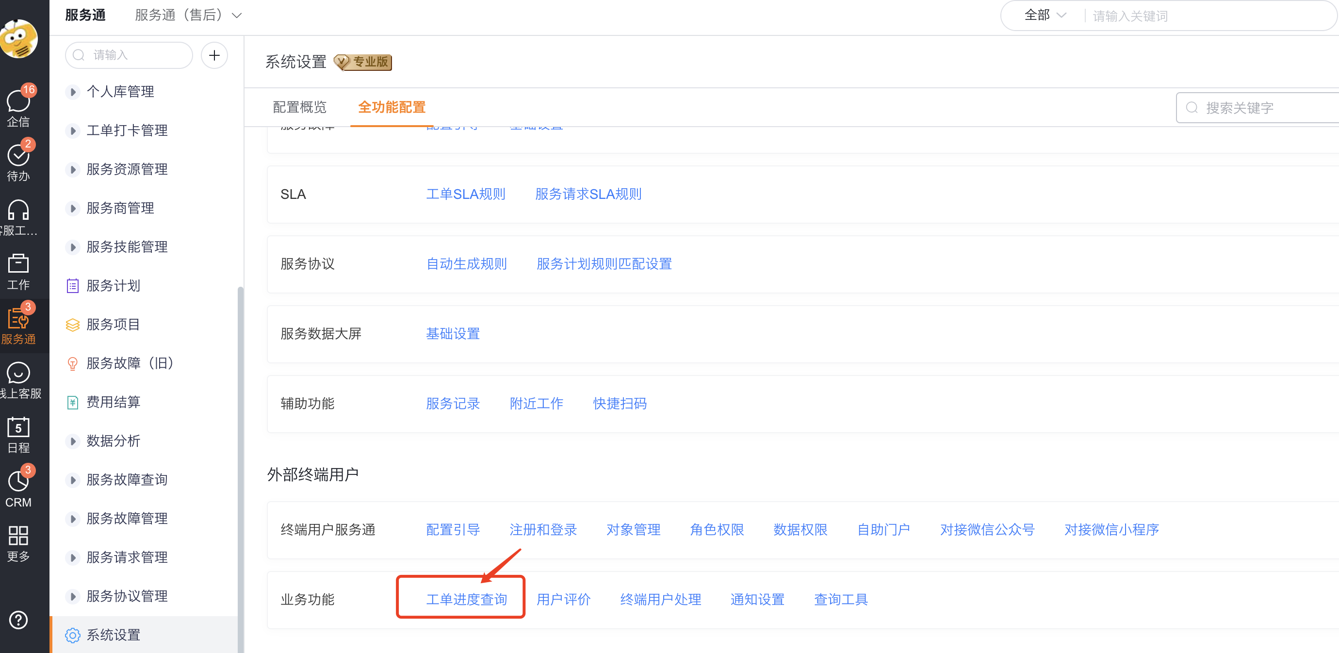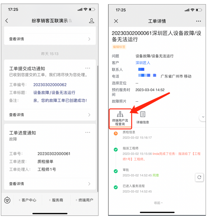 - 外部终端用户查询工单进度: