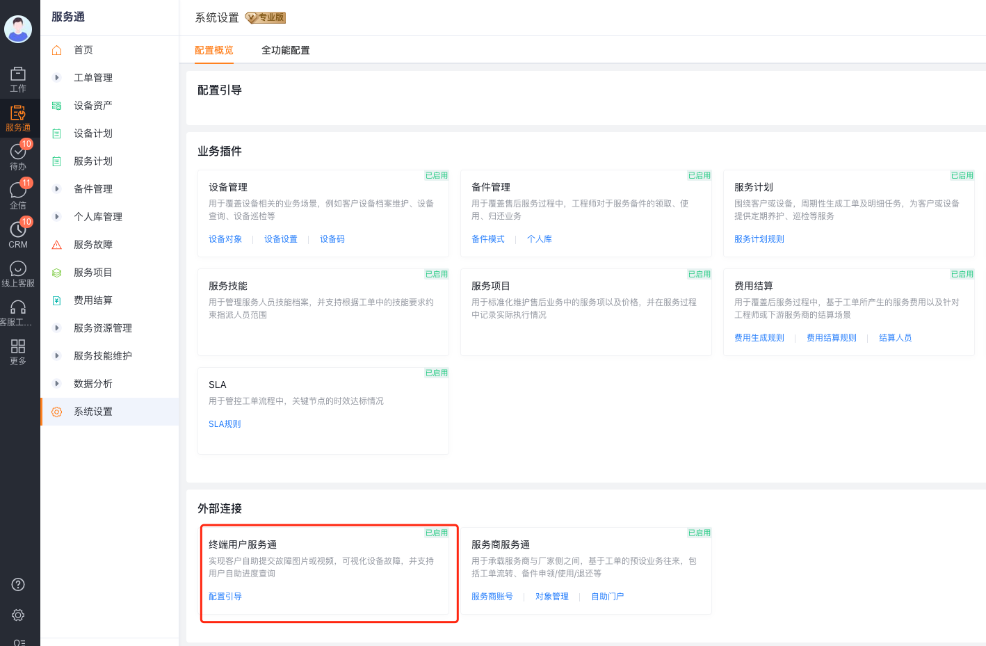 开通入口:服务通应用->系统设置->概览设置,选择终端用户服务通
