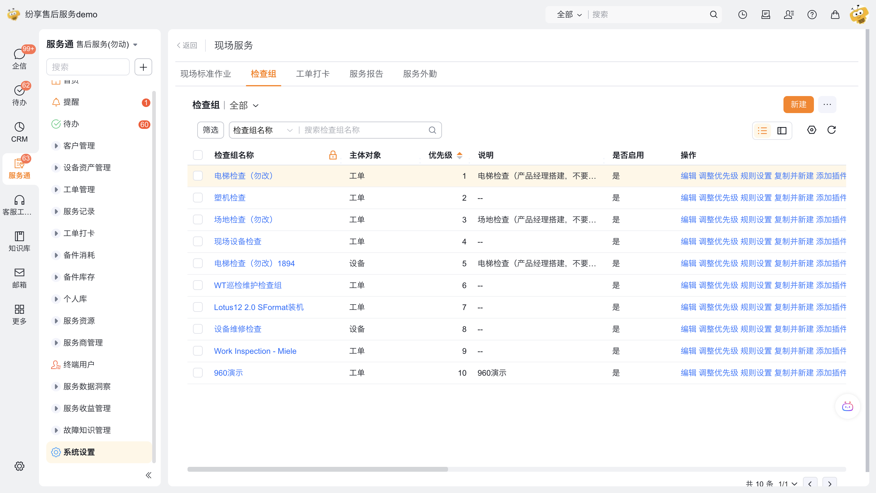 操作入口:服务通->系统设置->检查组