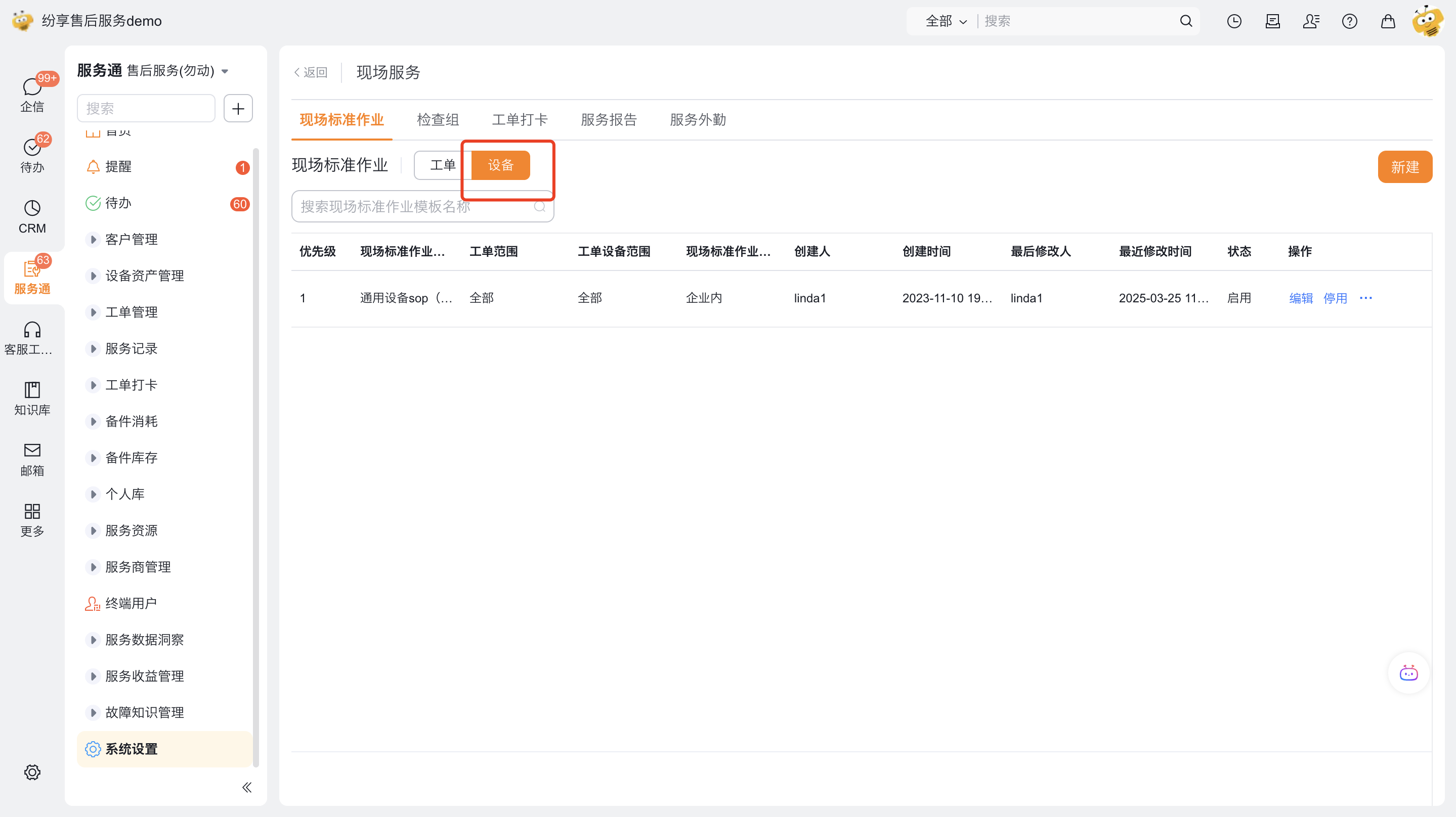 - 目标主体:设备(工单设备从对象的设备字段)。即是针对触发当前标准作业的工单下的工单设备从对象的每台设备为主体。