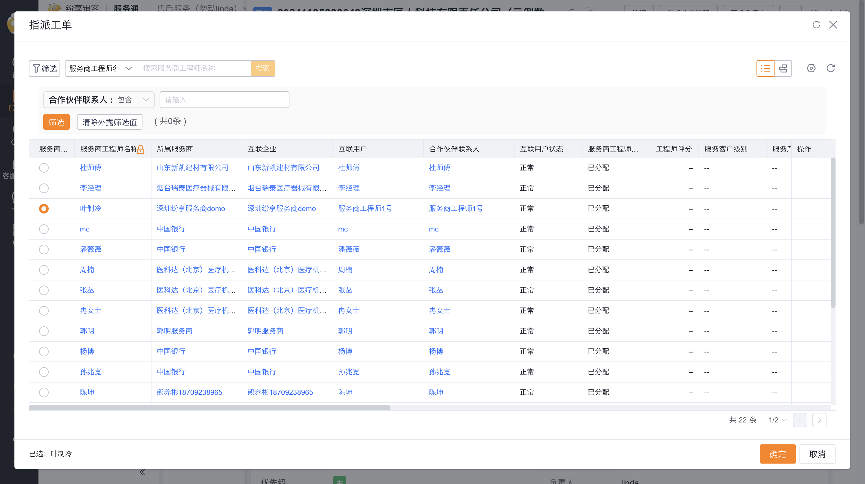 当企业部分工单需要外包给服务商服务时,可将工单自动/手动分配分配给各服务商工程师。