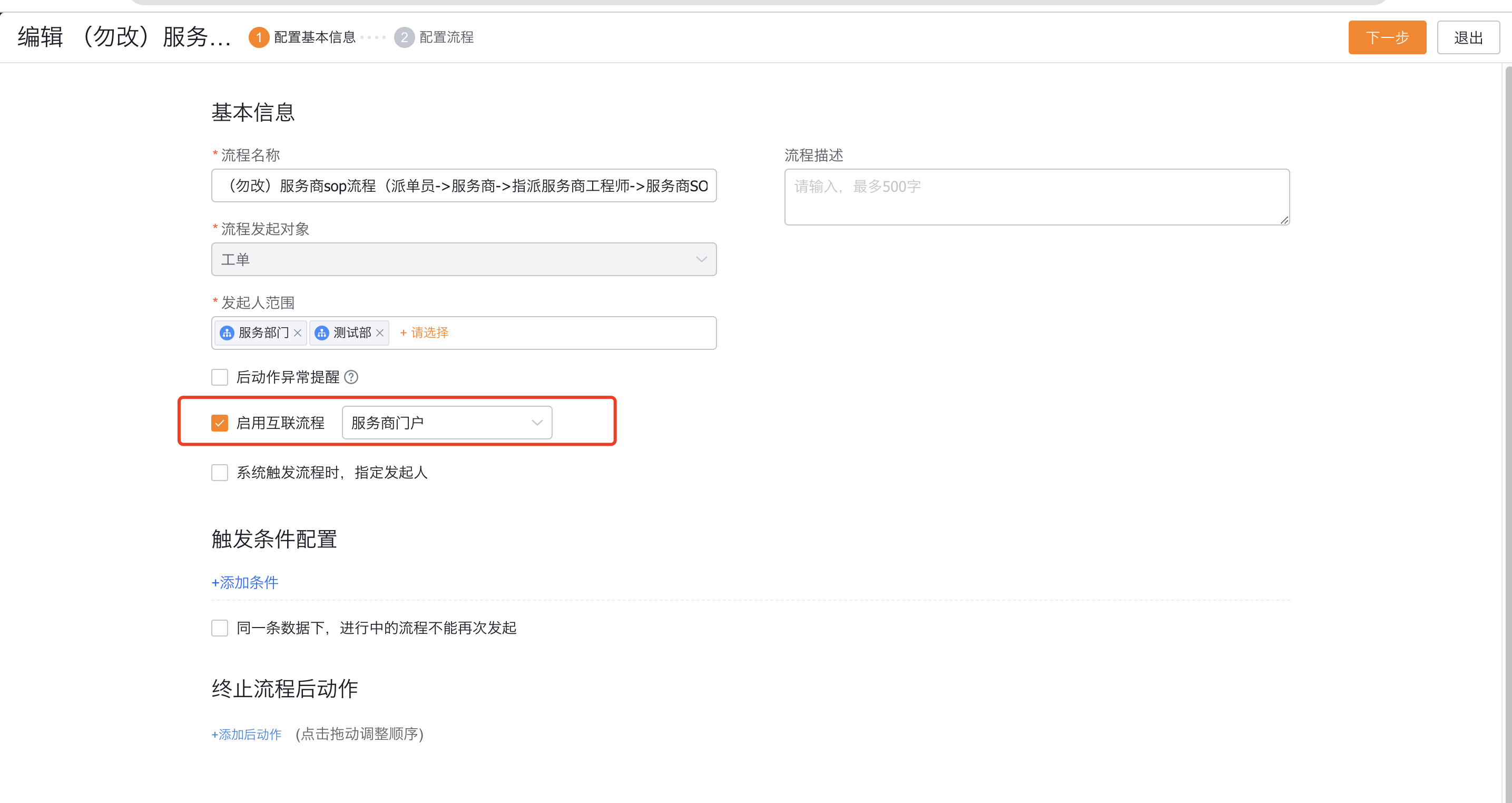 - 配置好互联服务流程后,可设置自动指派规则,将符合条件的工单自动指派给服务商。