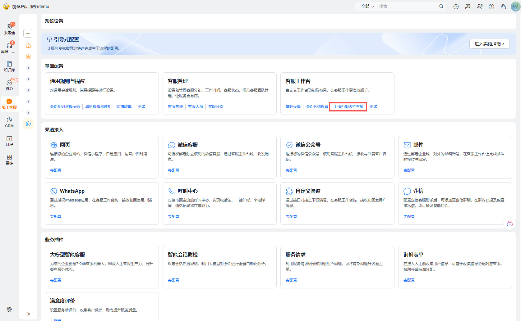 step3:在快捷回复设置项下绑定快捷回复的知识库场景,注意:快捷回复的适用渠道是根据用户配置的接入渠道自动生成的,例如:用户仅仅配置网页接入、邮箱接入的渠道时,则系统会自动创建网页、邮箱两个选项卡,用户仅需要进行数据绑定即可。