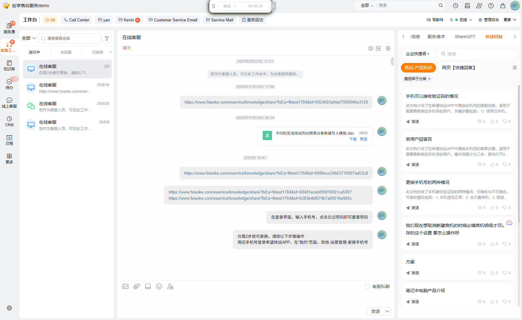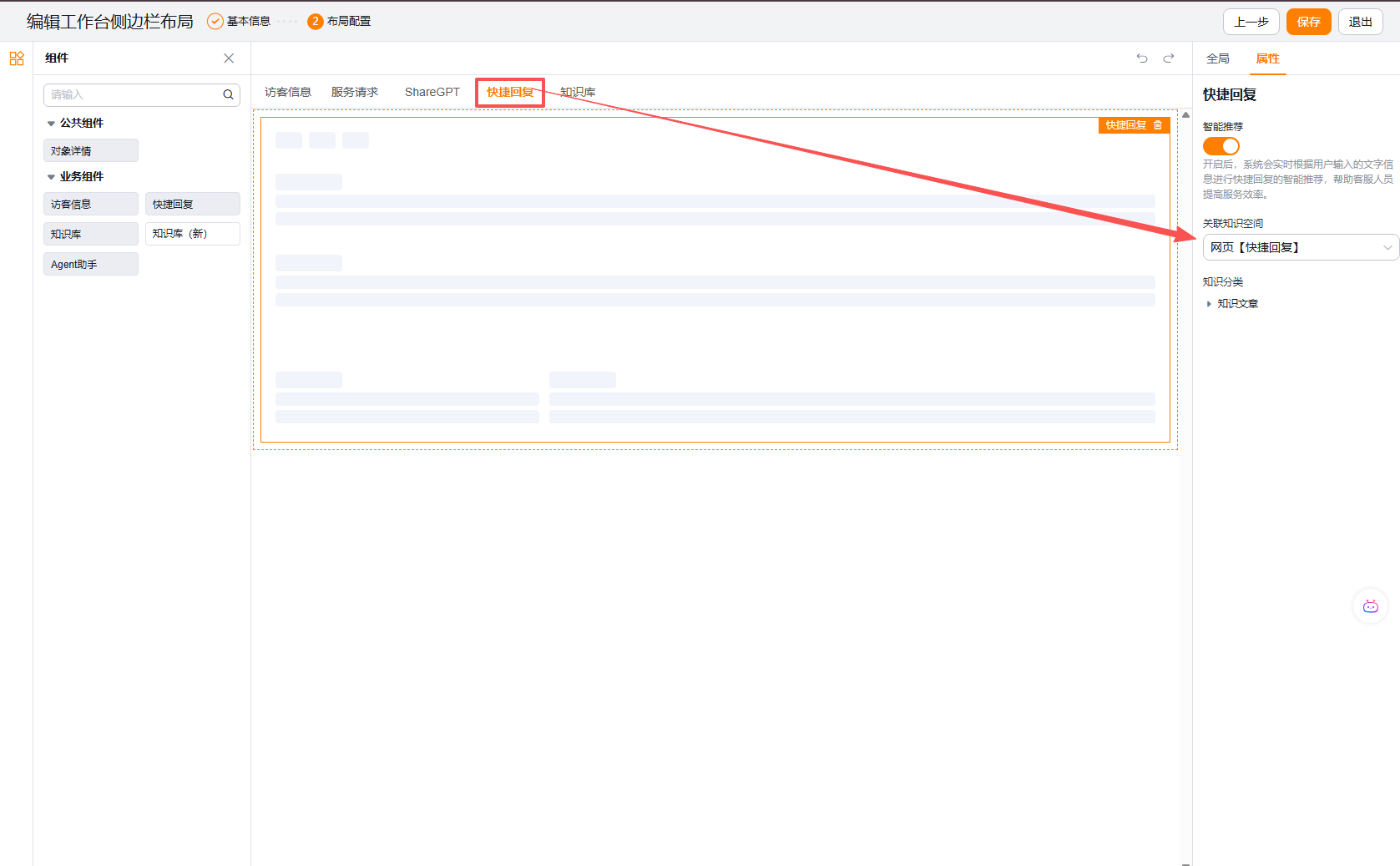 企业级快捷回复的数据是存储在知识库内的,需要由管理员提前在知识库内维护数据;具体流程如下: