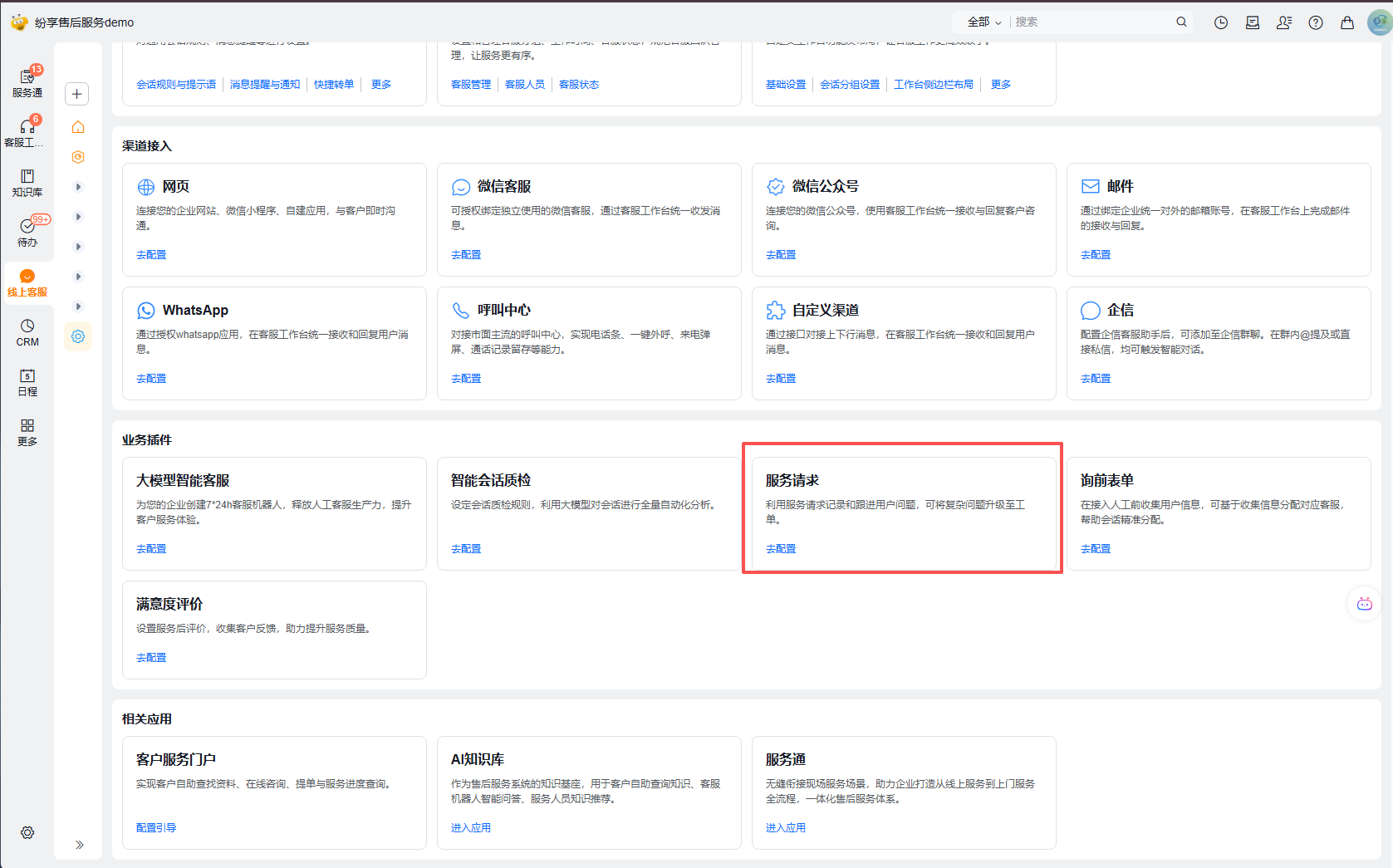 服务请求是线上客服应用的一个业务插件,如下图所示