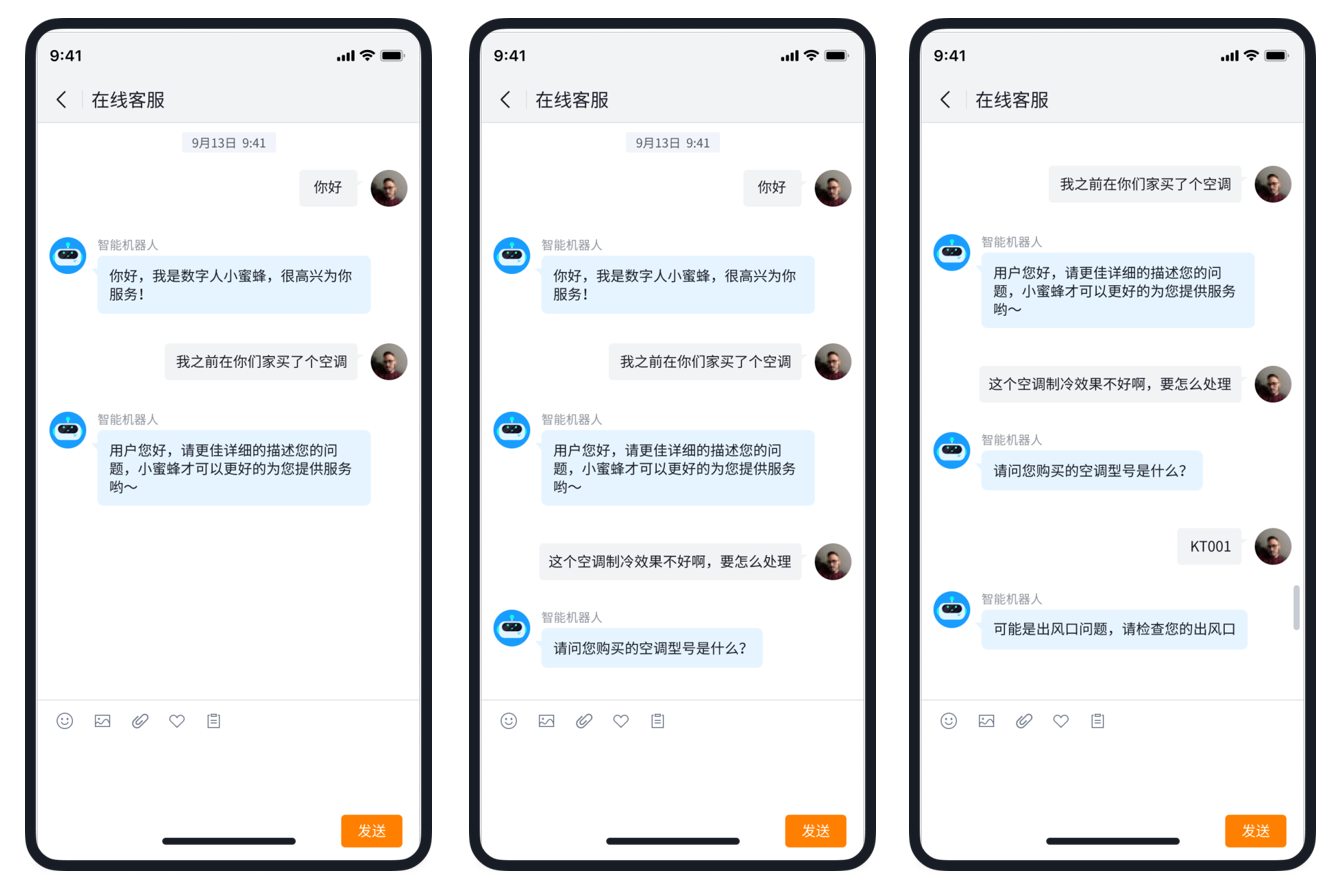 纷享线上客服内置多类 AI Agent,覆盖机器人接待/人工客服辅助与大模型会话质检三大场景: