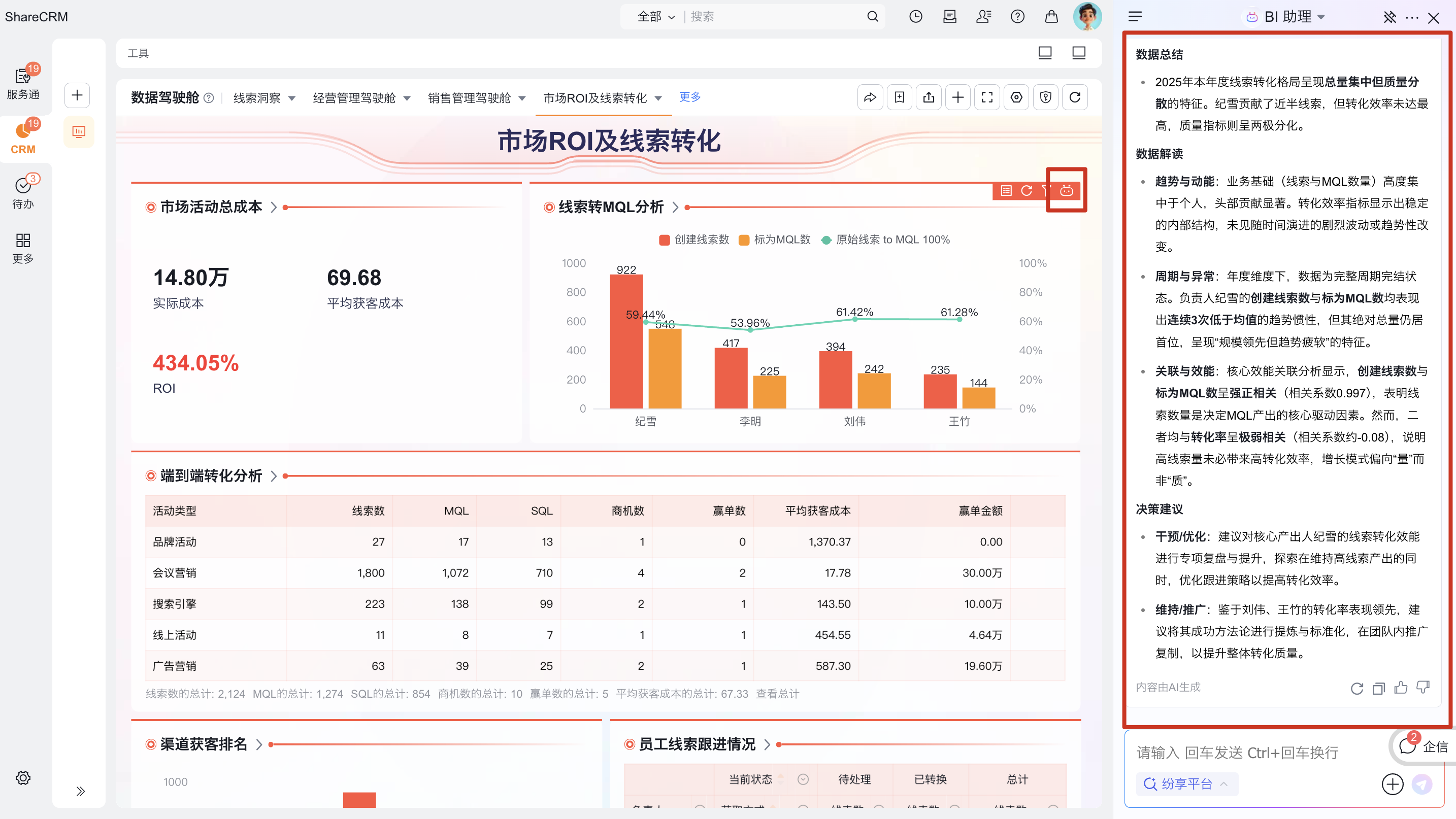 统计图卡片:在首页、自定义页面、驾驶舱中的统计图可以点击统计图有上方按钮来解读当前统计图数据。