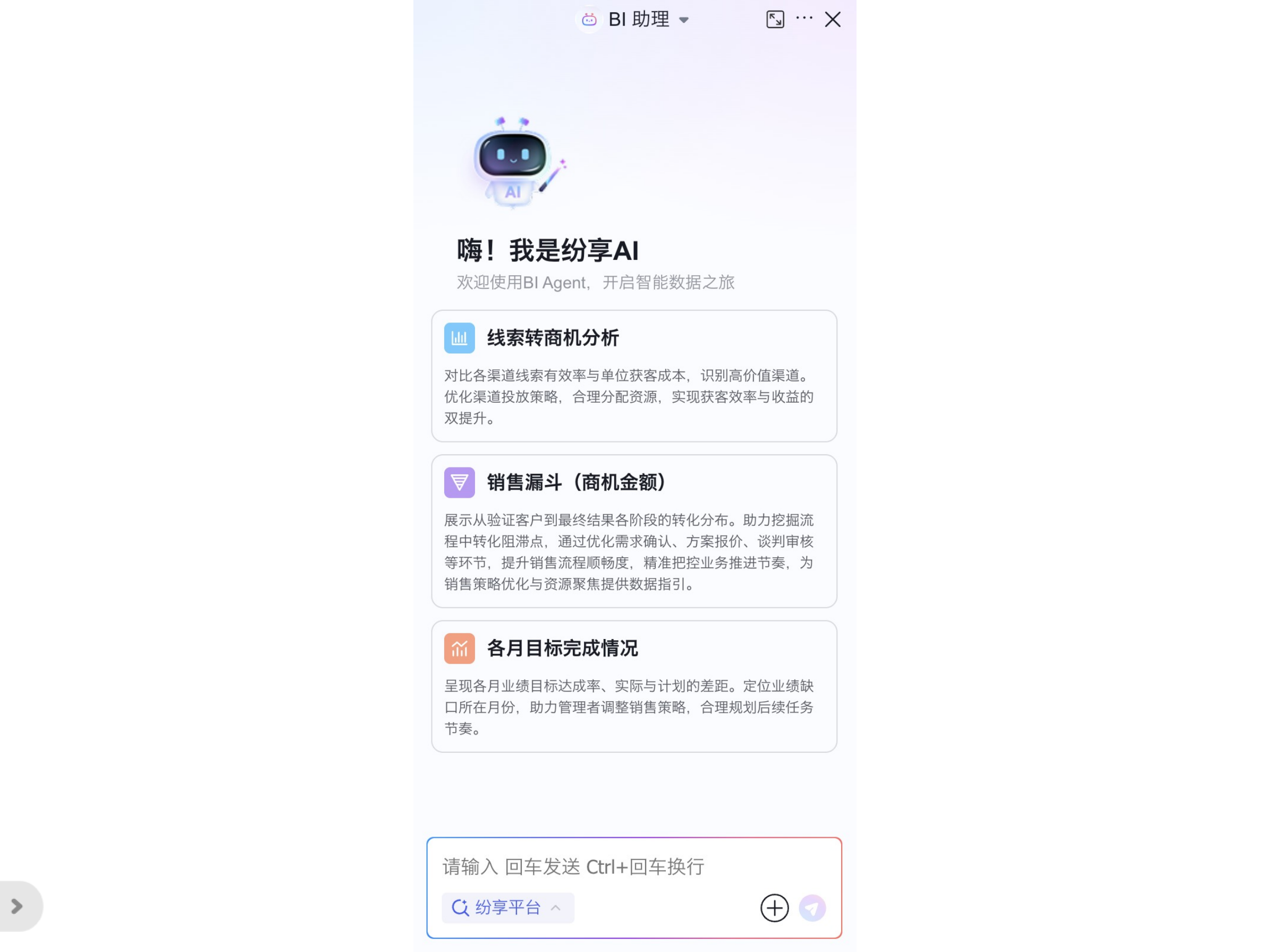 - 选择推荐内容:点击推荐问题卡片,系统会直接执行该场景的默认分析,生成对应的图表、数据解读及行动建议。