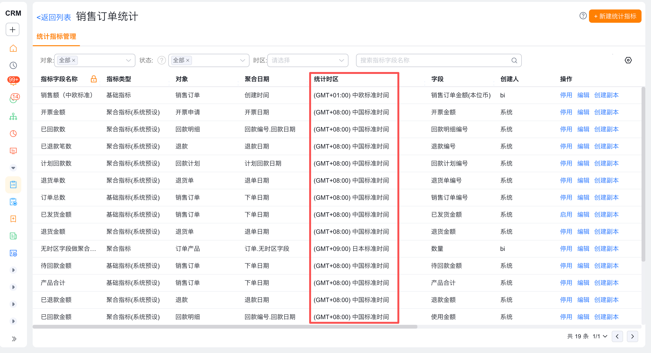 - 在创建统计图时,统计图默认时区为登录人的个人时区,可以选择聚合时区与统计图时区相同的指标。