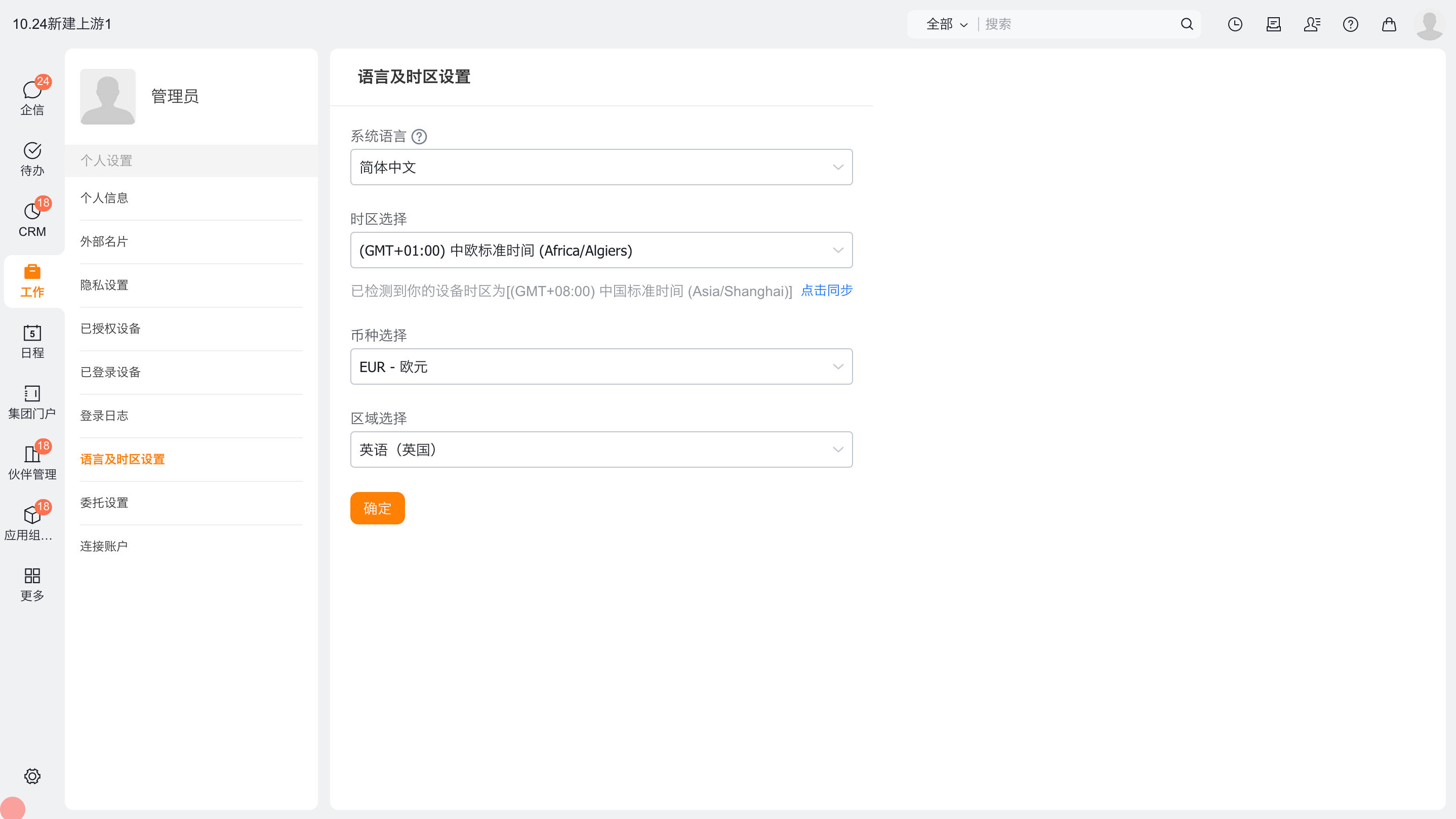 - 企业下单开通多区域后,则支持了多区域能力,用户可以基于当前选择的区域,在CRM及其他各应用模块功能和用户界面中涉及到日期、日期时间、时间、金额、数值等类型的字段均以所选区域对应的格式进行显示,(如日/月顺序、千分位符号、小数点),数据内容与计算逻辑全球统一,避免格式混淆导致误读。