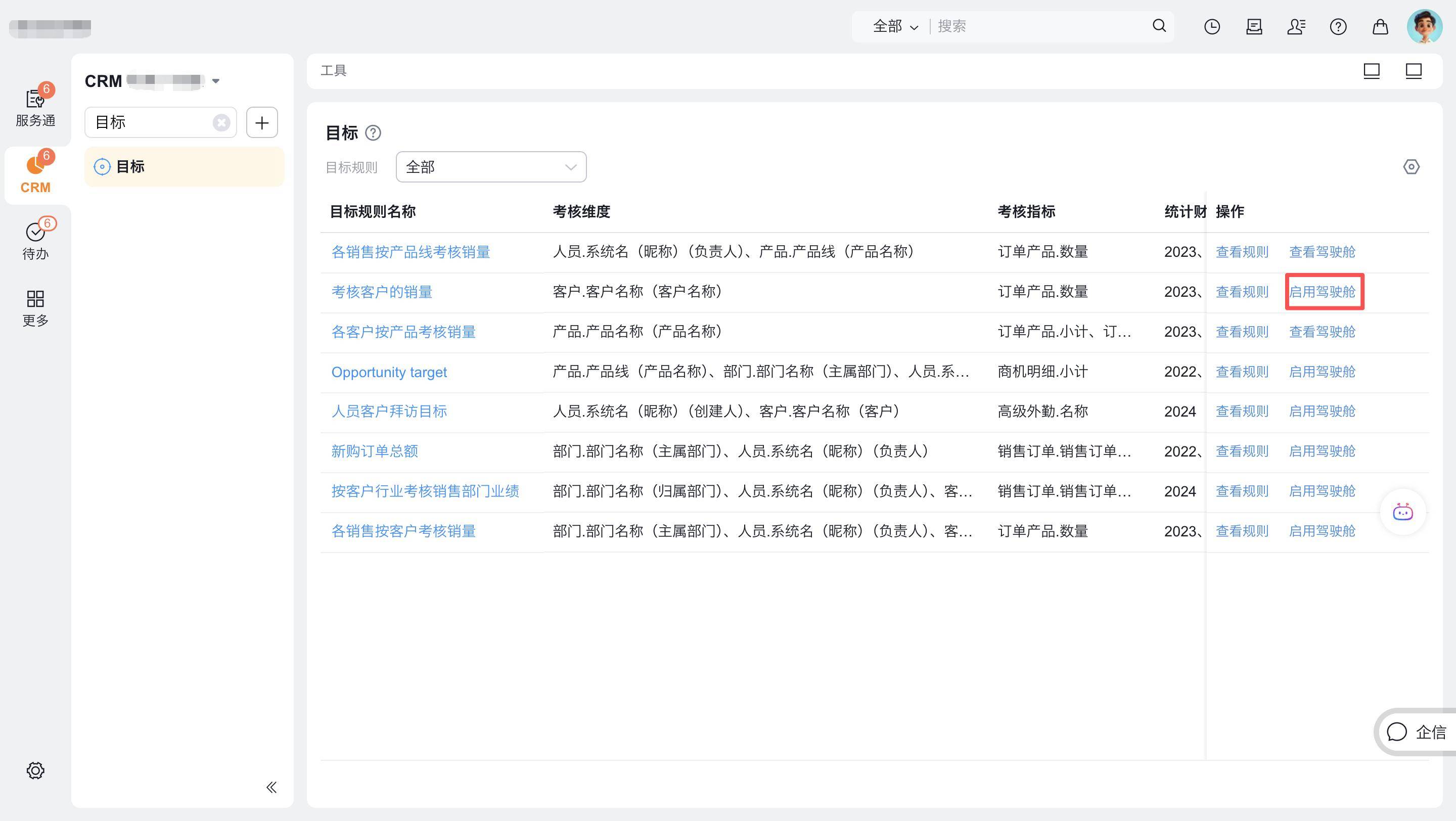 在目标值列表页点击每个目标规则后方的查看驾驶舱按钮,可查看每个目标规则对应的完成情况数据。