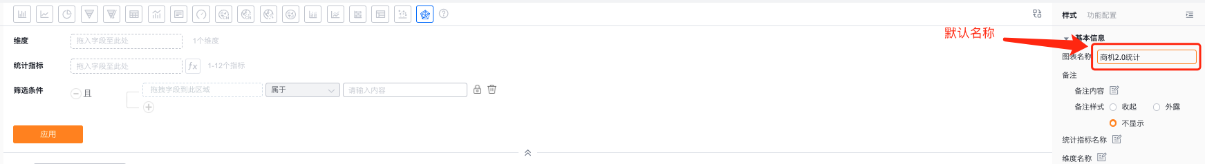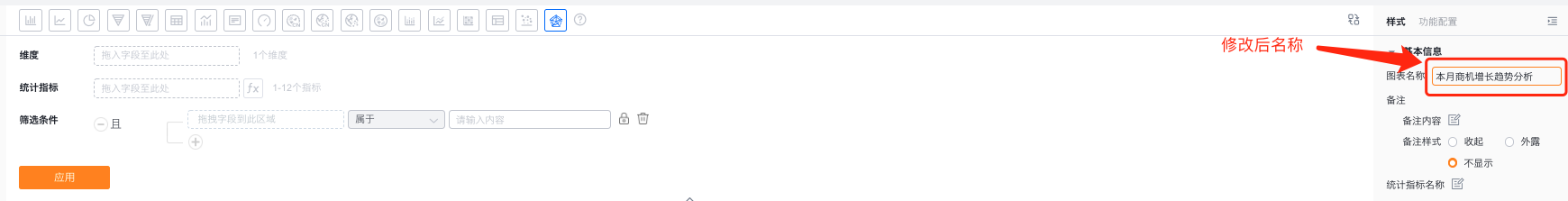 - 图表名称:新建时默认为分析主题名称,可根据图表配置修改为自定义图表名称
