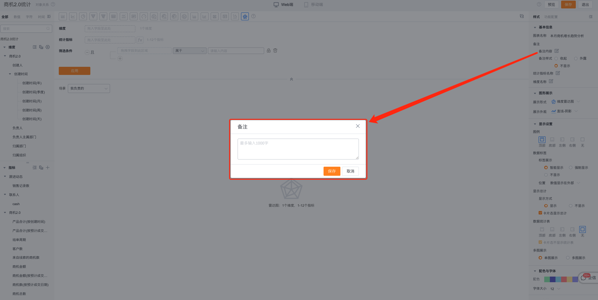 - 备注内容:基于当前图表可以设置备注信息,以便查看者更好的了解图表所表达的内容