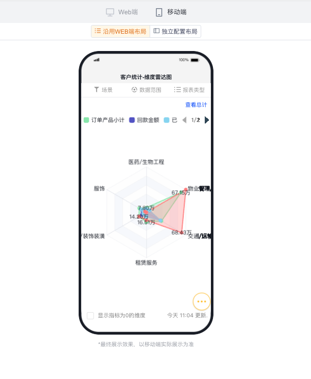 - 默认按WEB端对应配置项选中的内容回显,可进一步调整成更适合移动端展示的效果