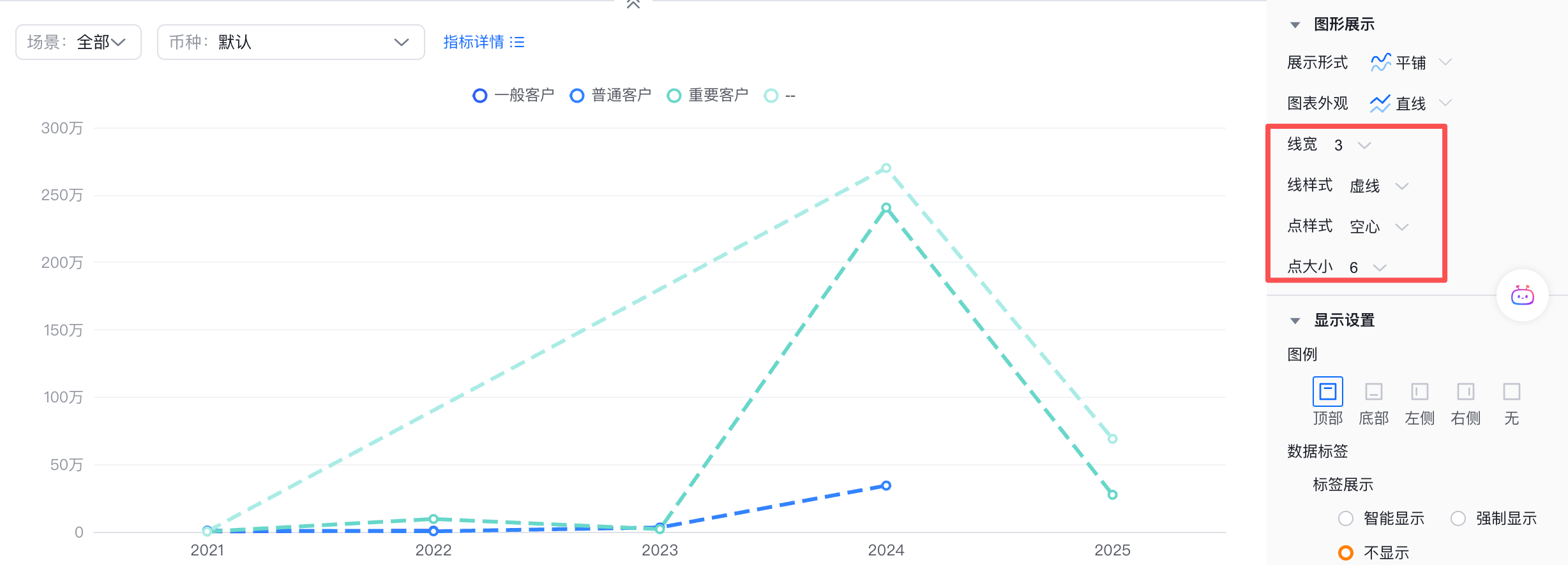 - 图表外观:默认直线,可切换为曲线