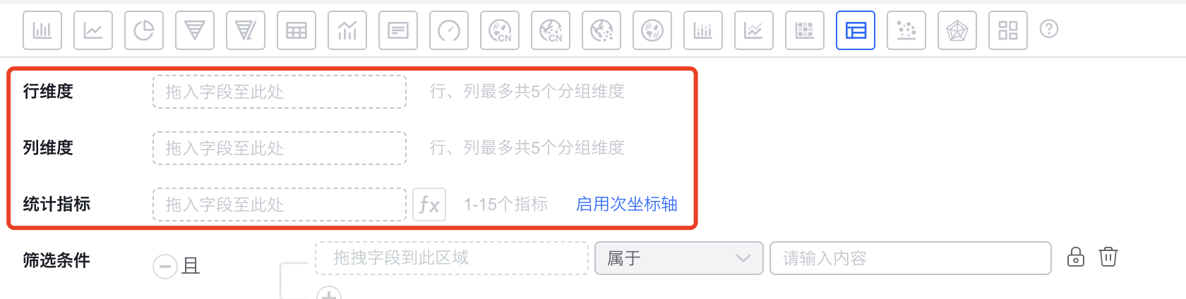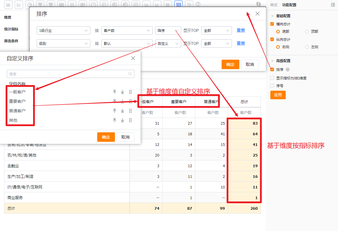 - 当维度时枚举值或者部门字段时,支持自定义排序
