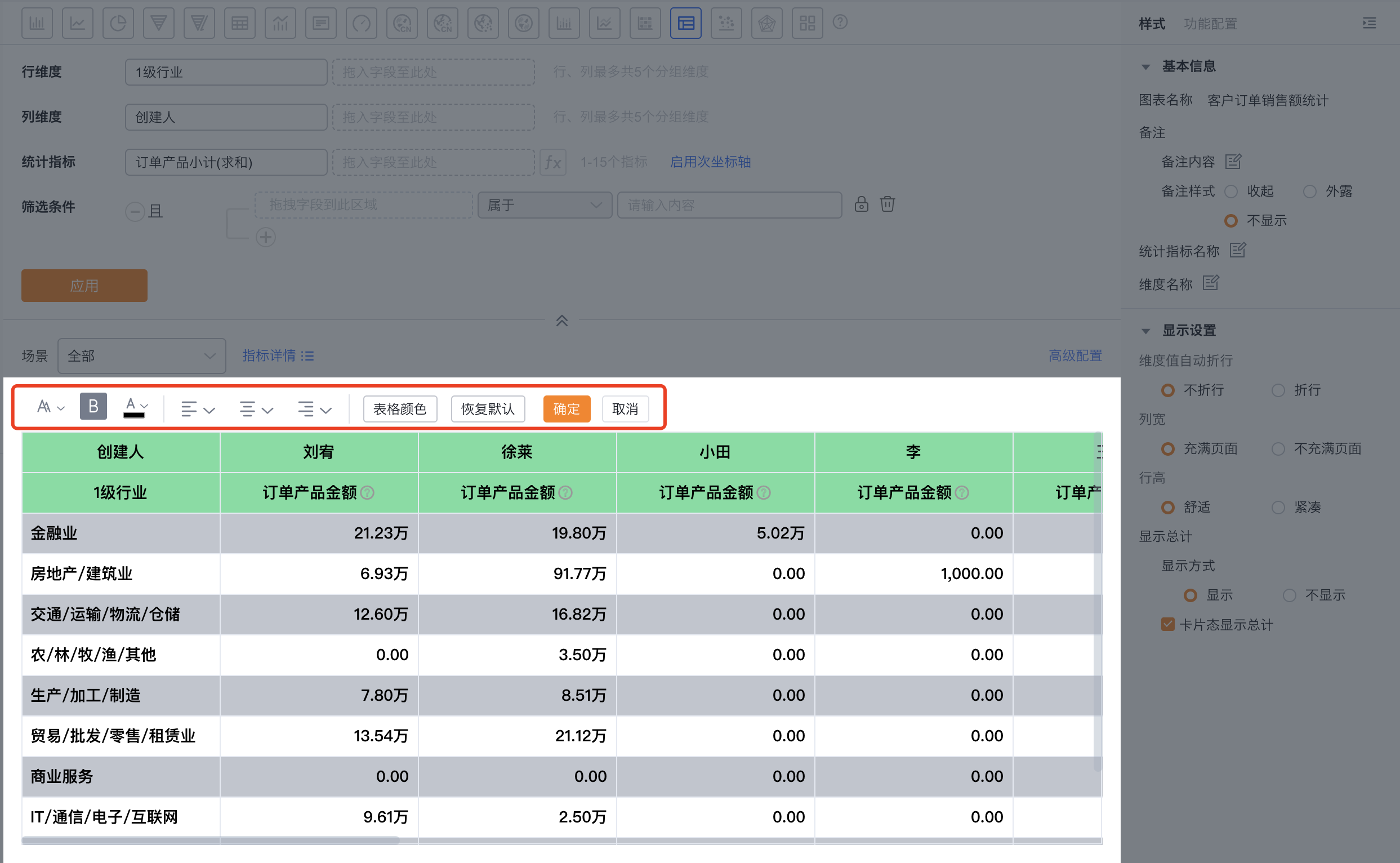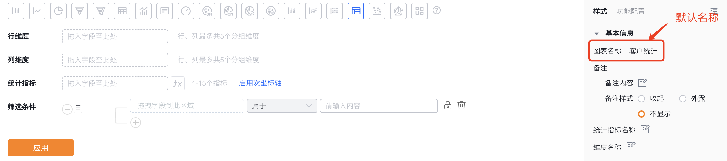 - 图表名称:新建时默认为分析主题名称,可根据图表配置修改为自定义图表名称