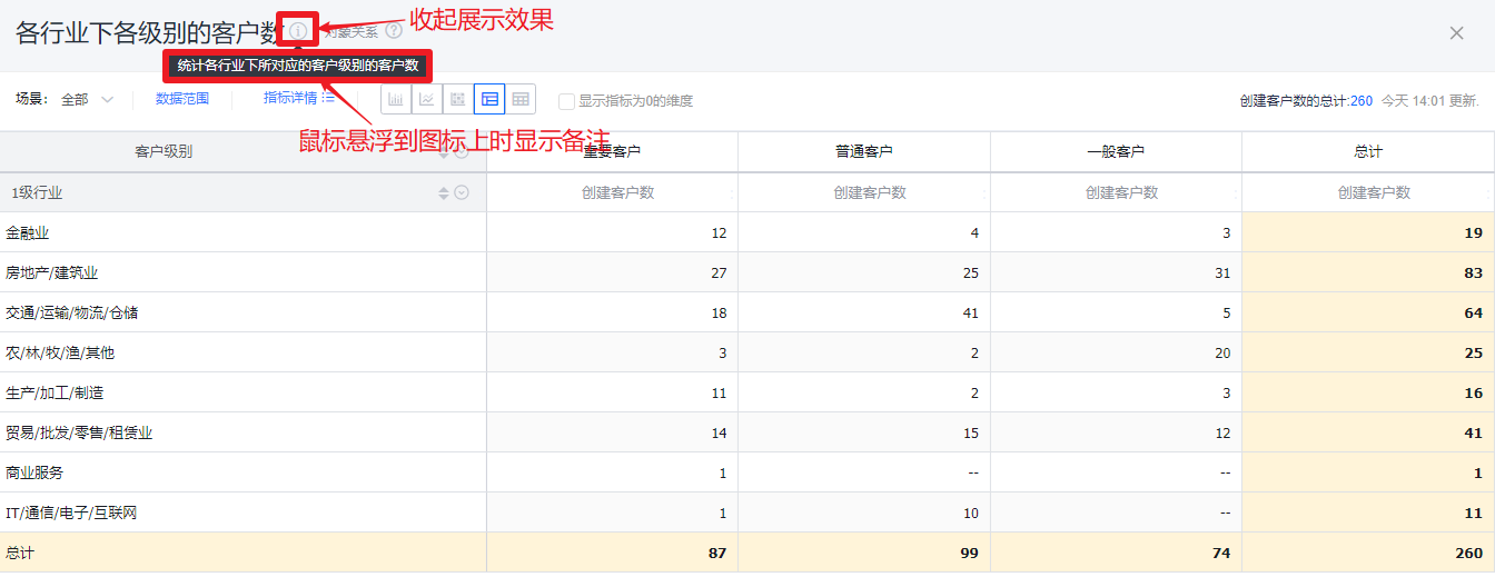 - 收起:以图标的形式显示在图表详情态和卡片态的标题后面,鼠标悬浮到图标上时显示备注内容