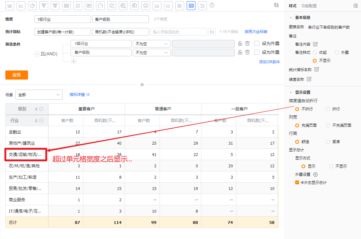 - 不折行:当维度值超过当前单元格宽度时隐藏,鼠标悬浮后显示全部
