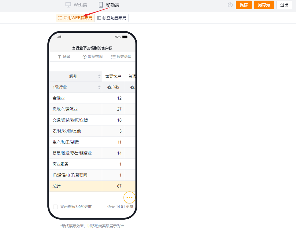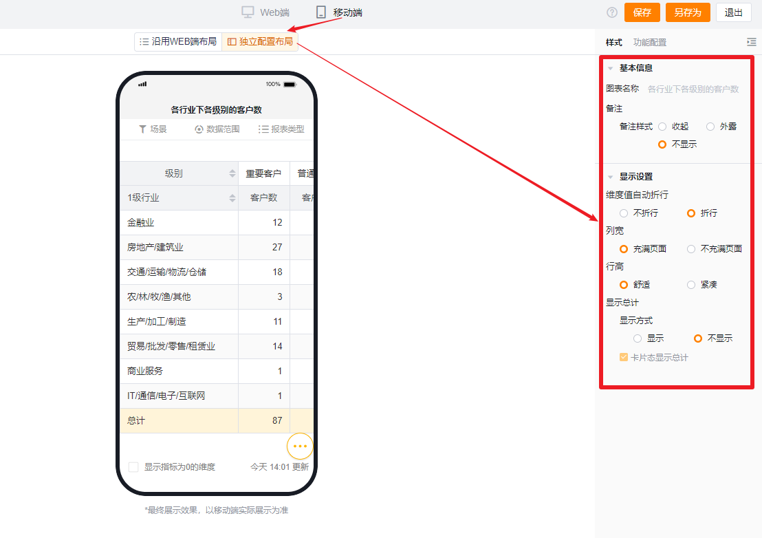 - 跟随WEB端布局回显,不可单独设置