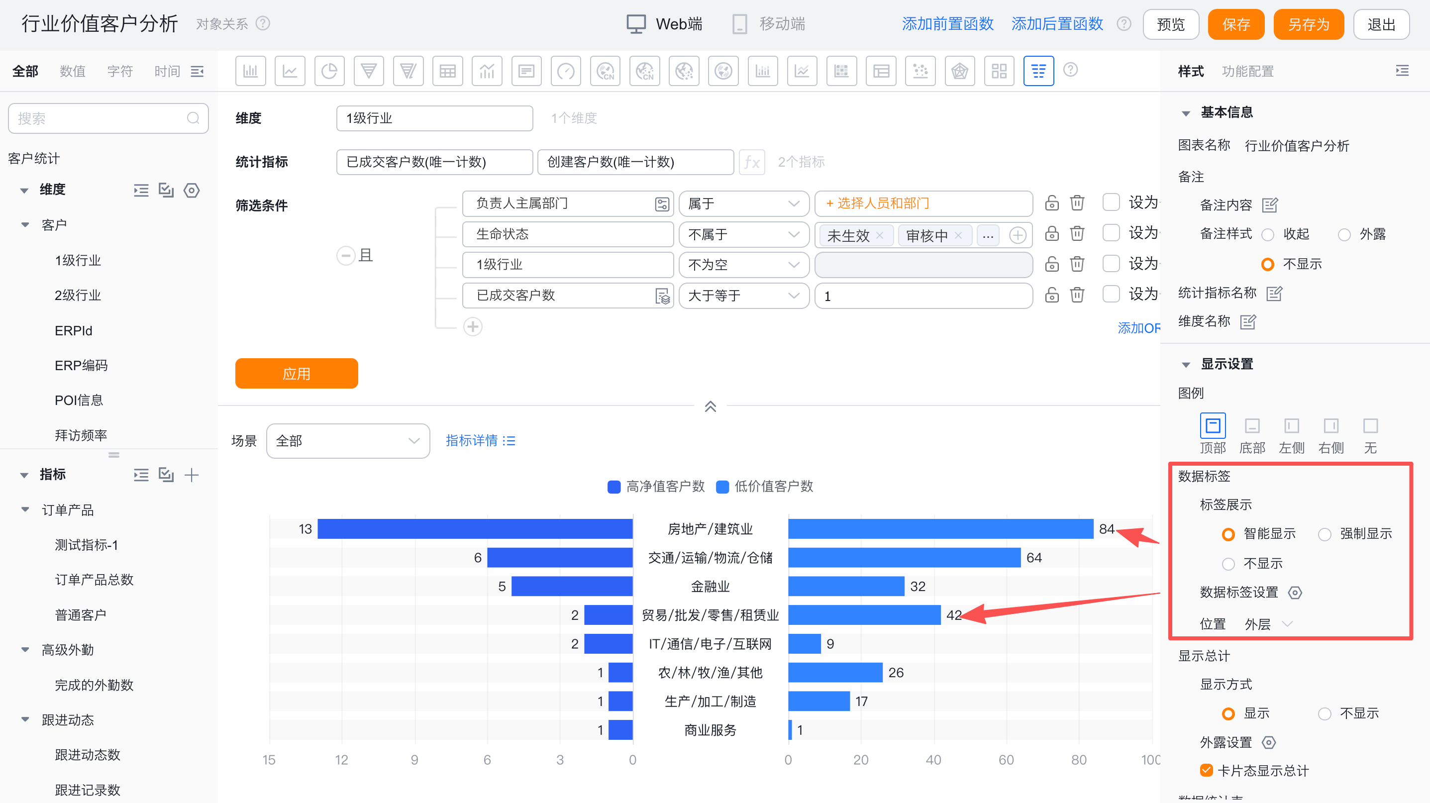 - 数据标签设置:可自定义指定指标是否显示数据标签