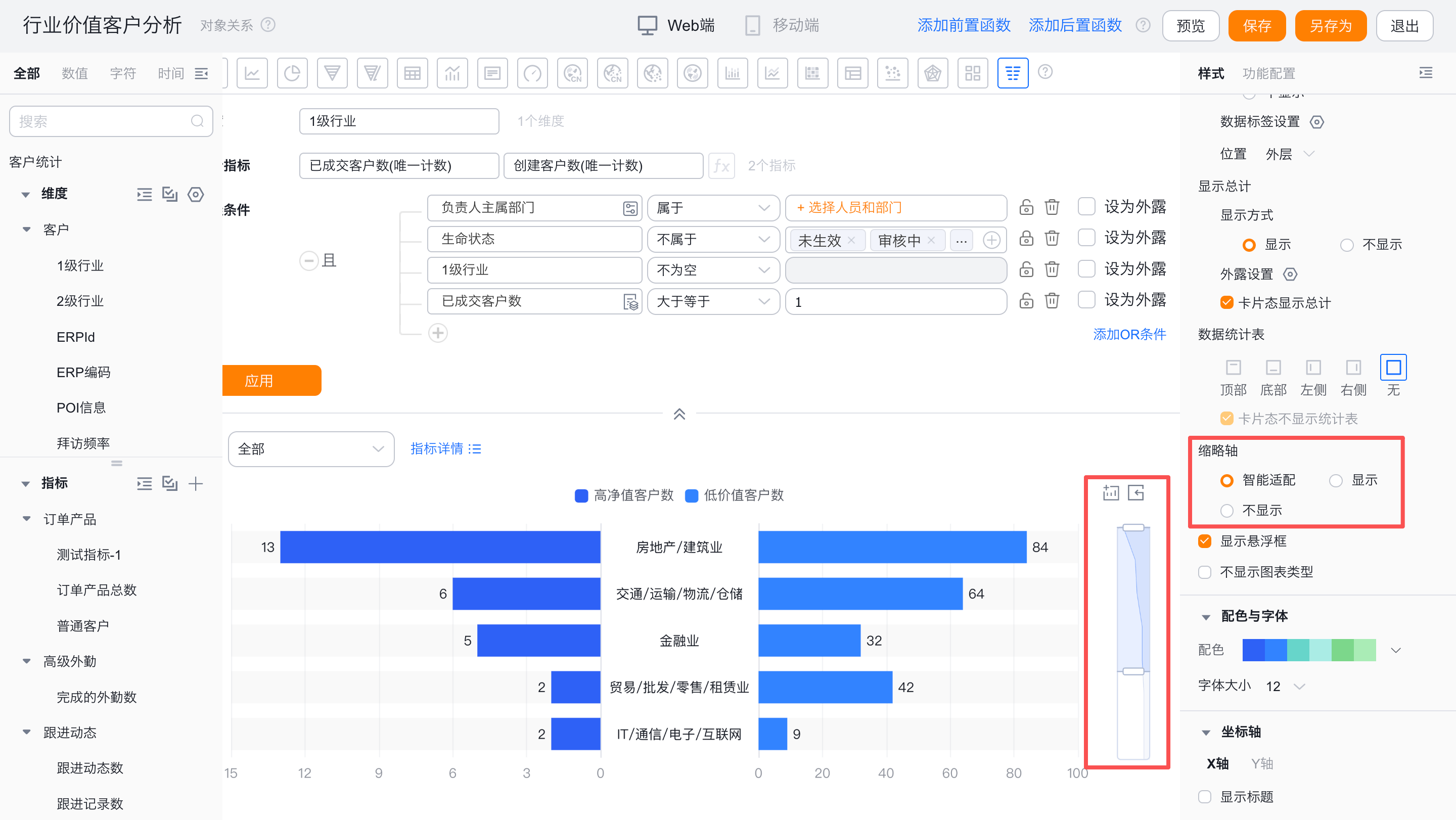 - 缩略轴:默认为智能适配,可切换为显示或者不显示
