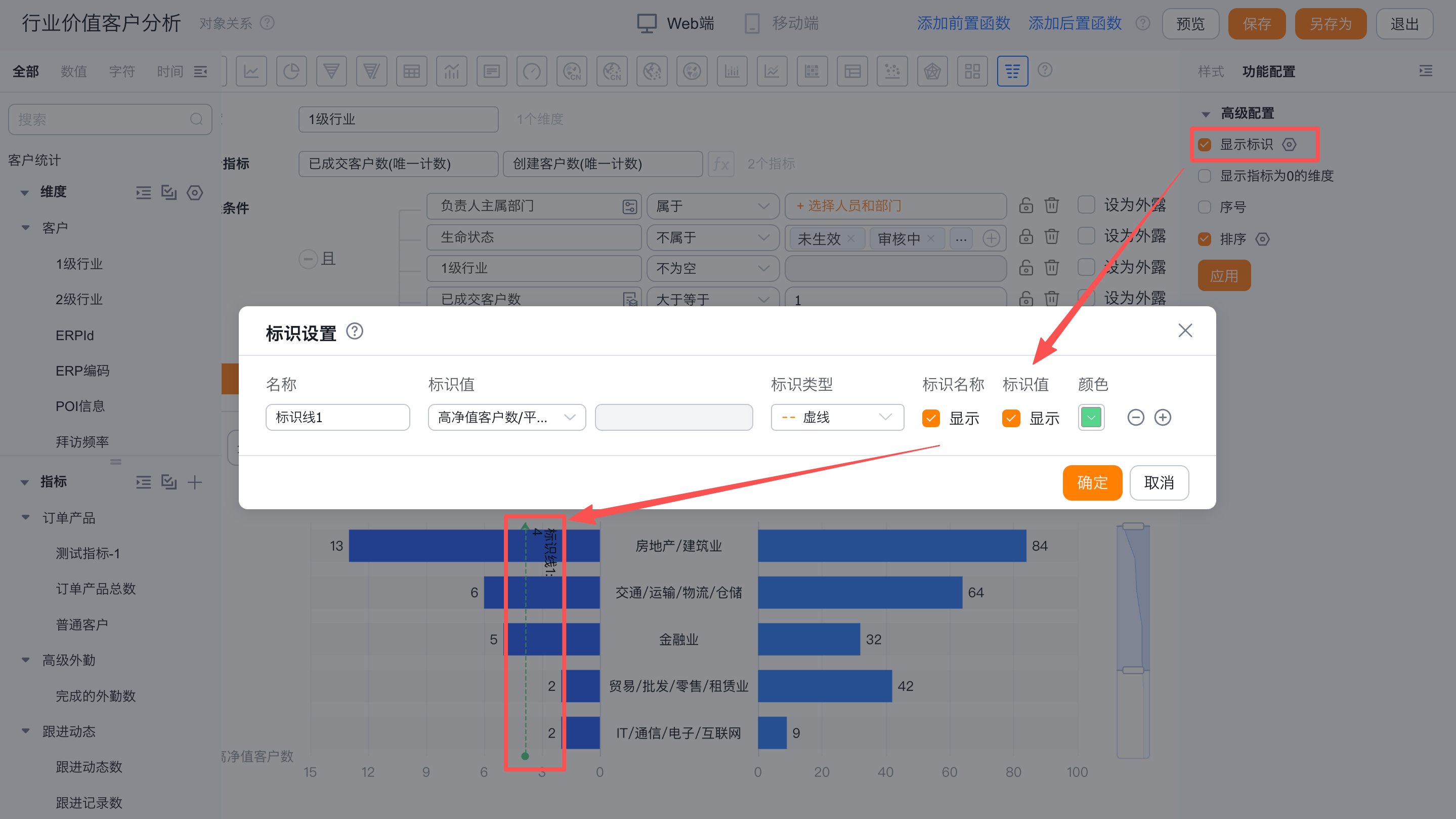 - 显示标识线值:默认不展示,可勾选展示。