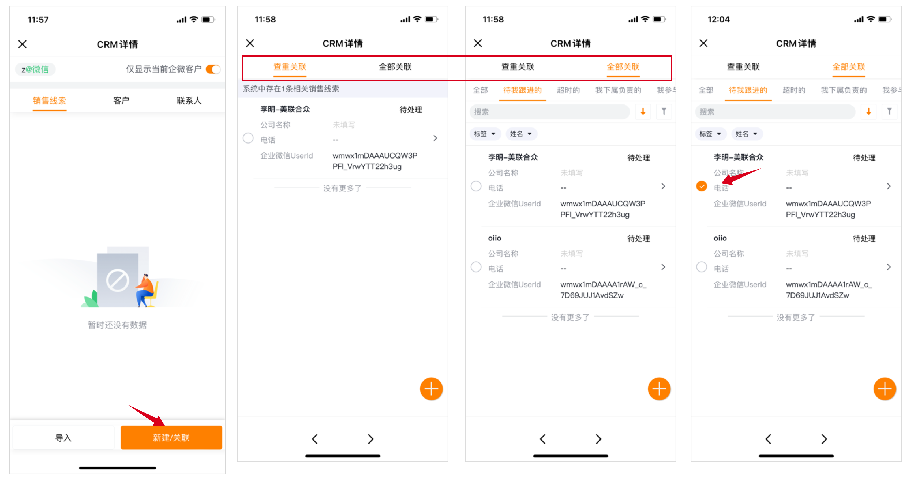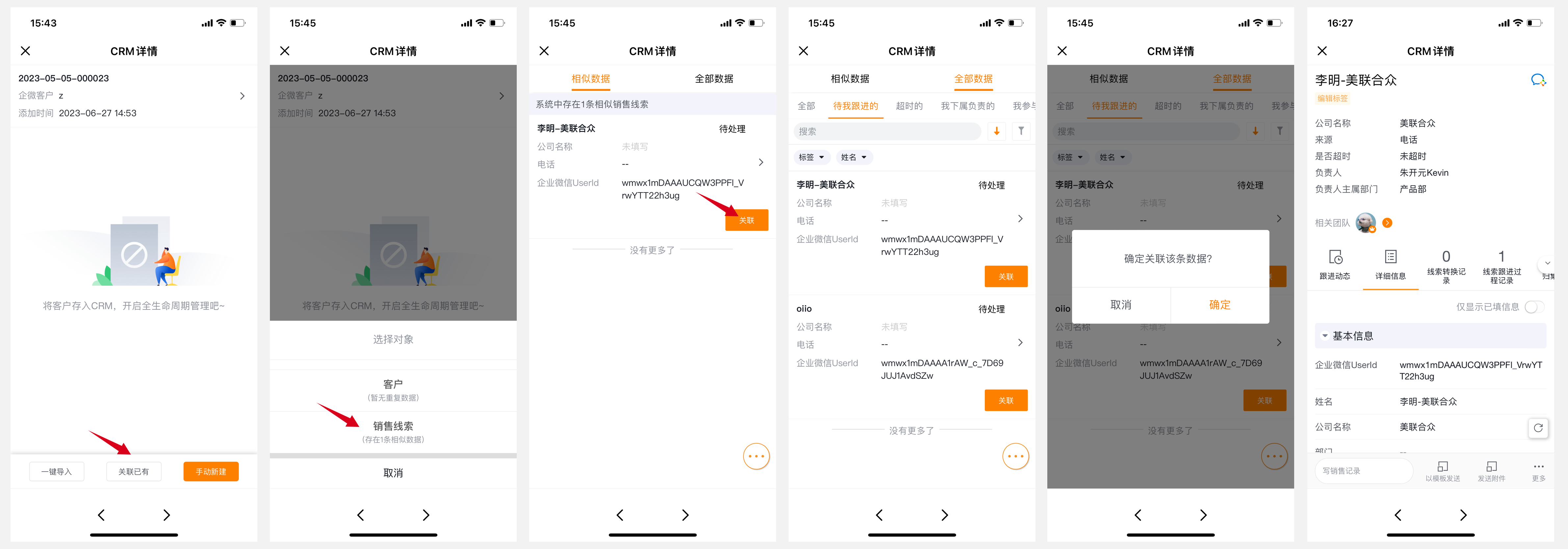 如果是先有线索且已录入CRM系统内,后添加为企微好友,可以通过关联操作将销售线索与该好友关联;