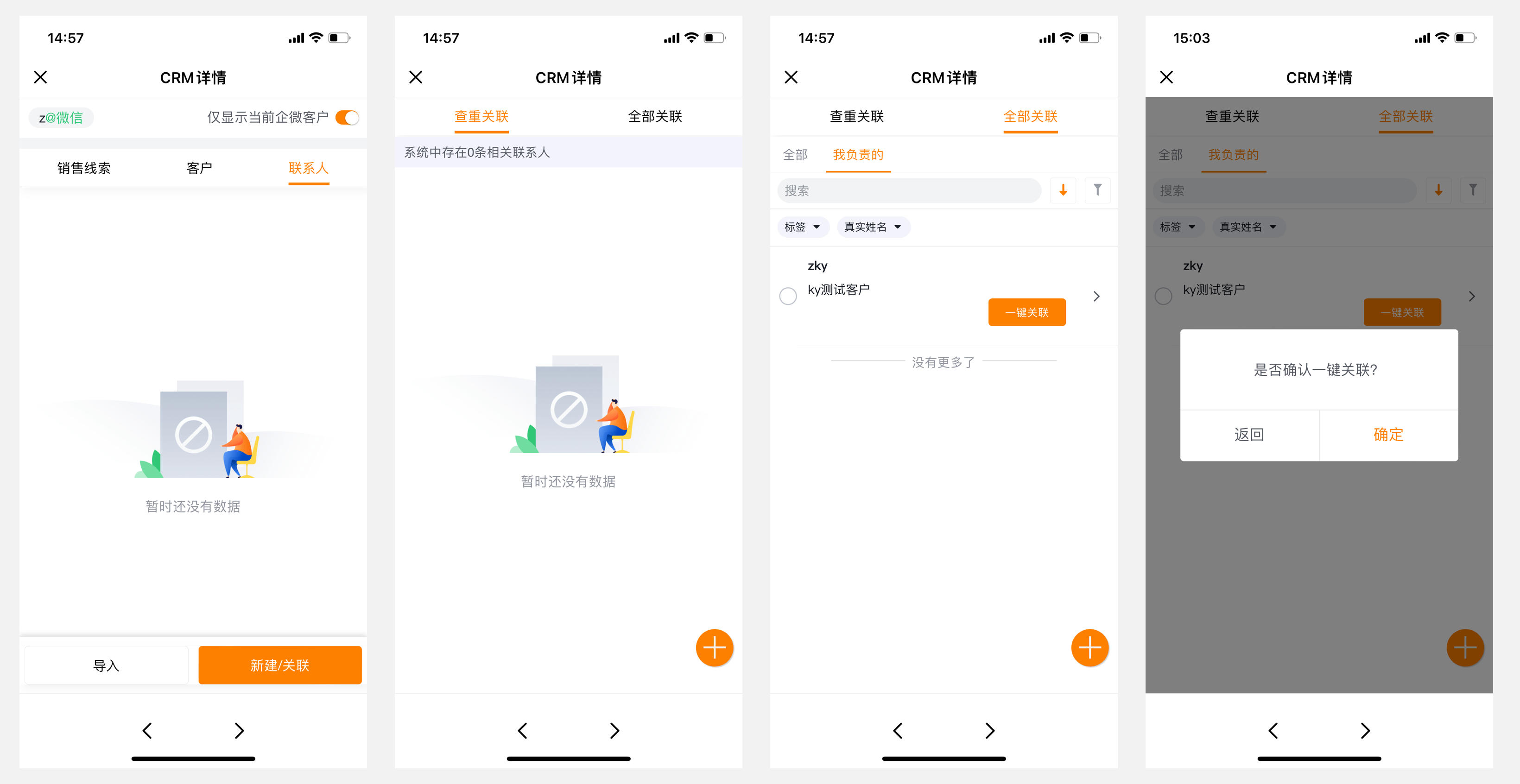 若所添加好友尚未与“销售线索”、“客户”、“联系人”产生关联,进入页面后会展示数据缺省页面。