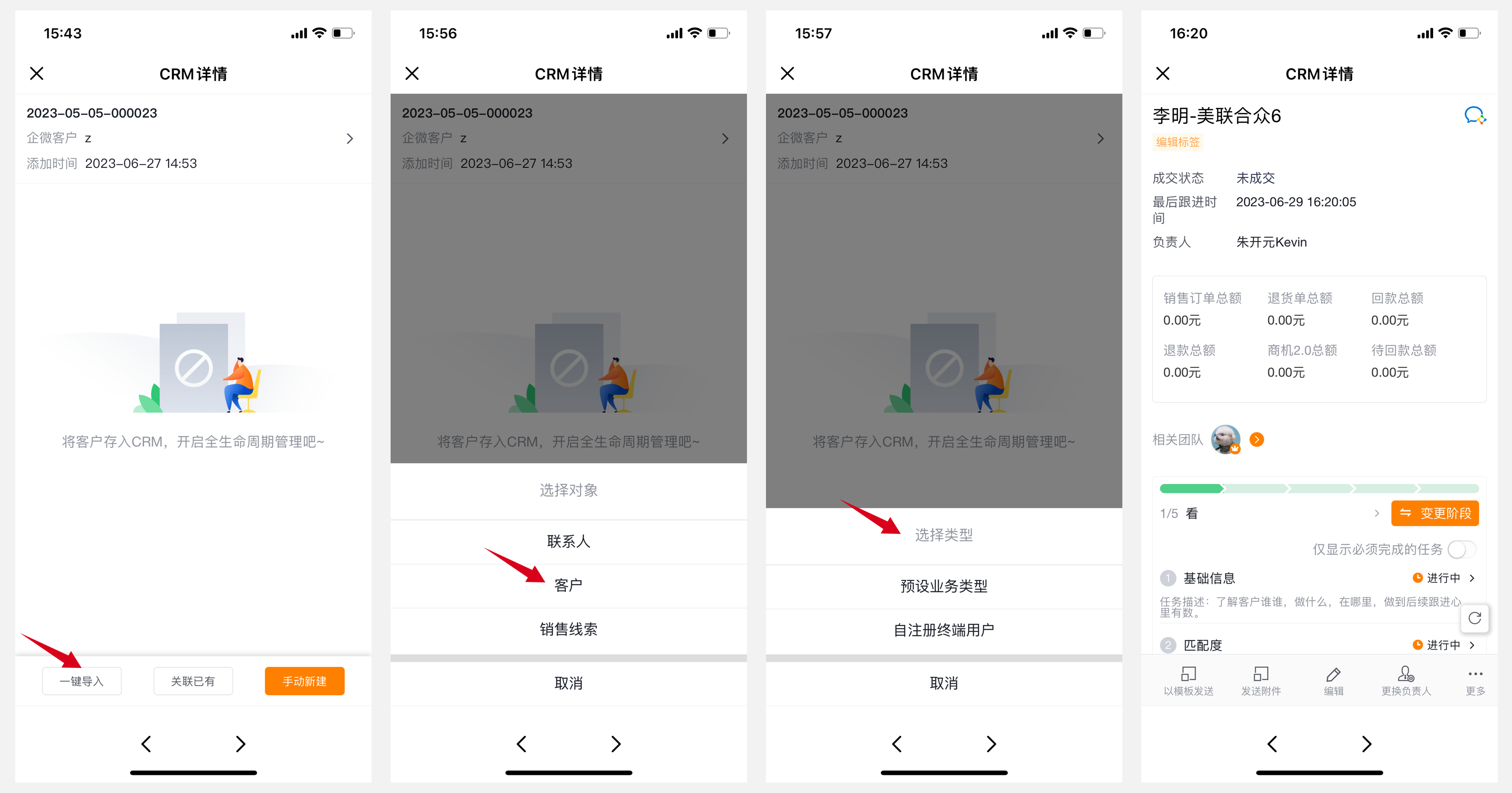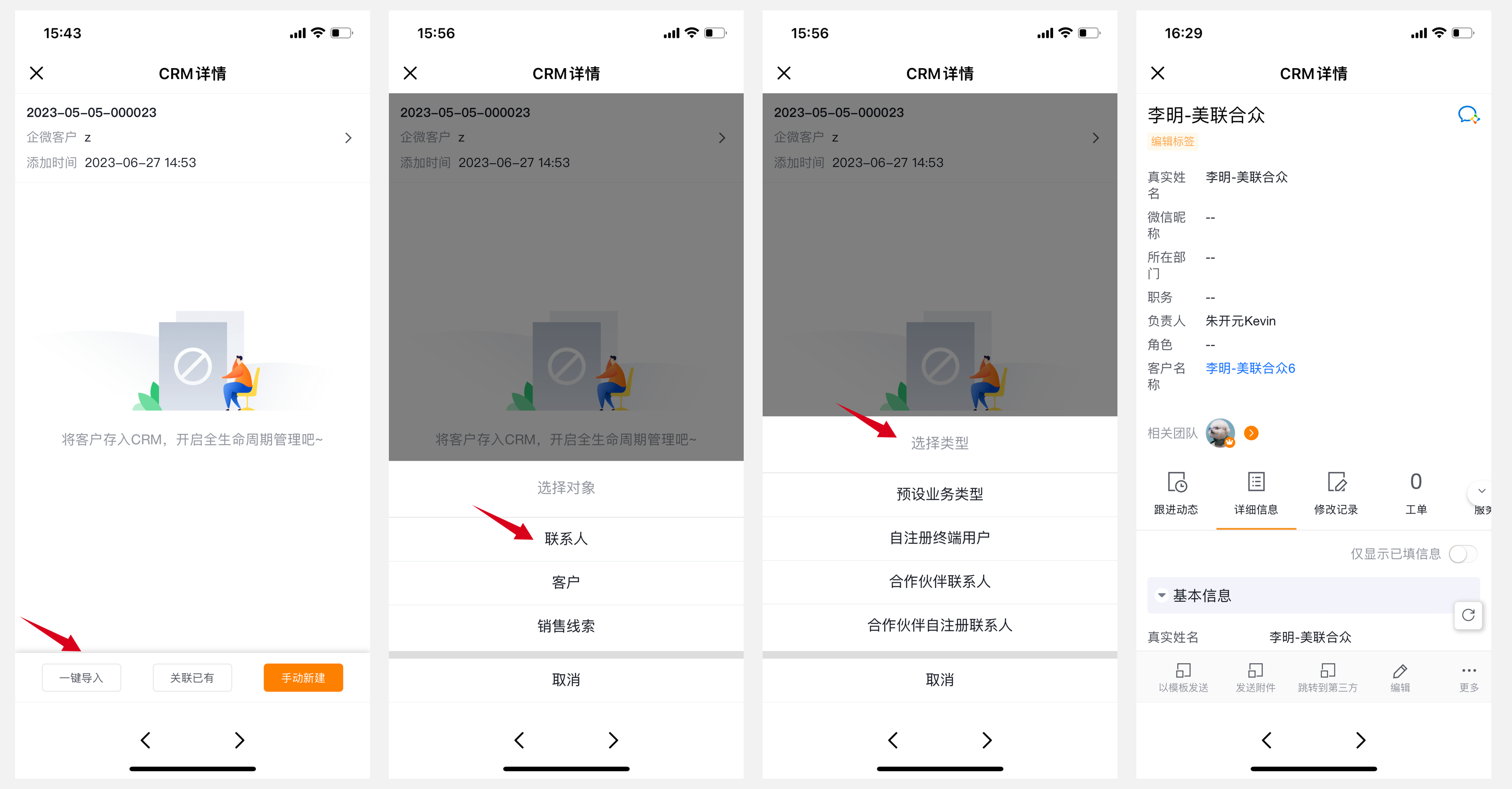 如果是先有客户信息且已录入CRM系统内,后添加为企微好友,可以通过关联操作将该好友与客户关联;