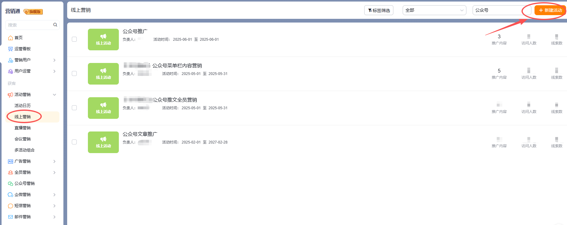 进入营销通-线上营销-新建线上营销活动,比如【公众号菜单栏内容营销】