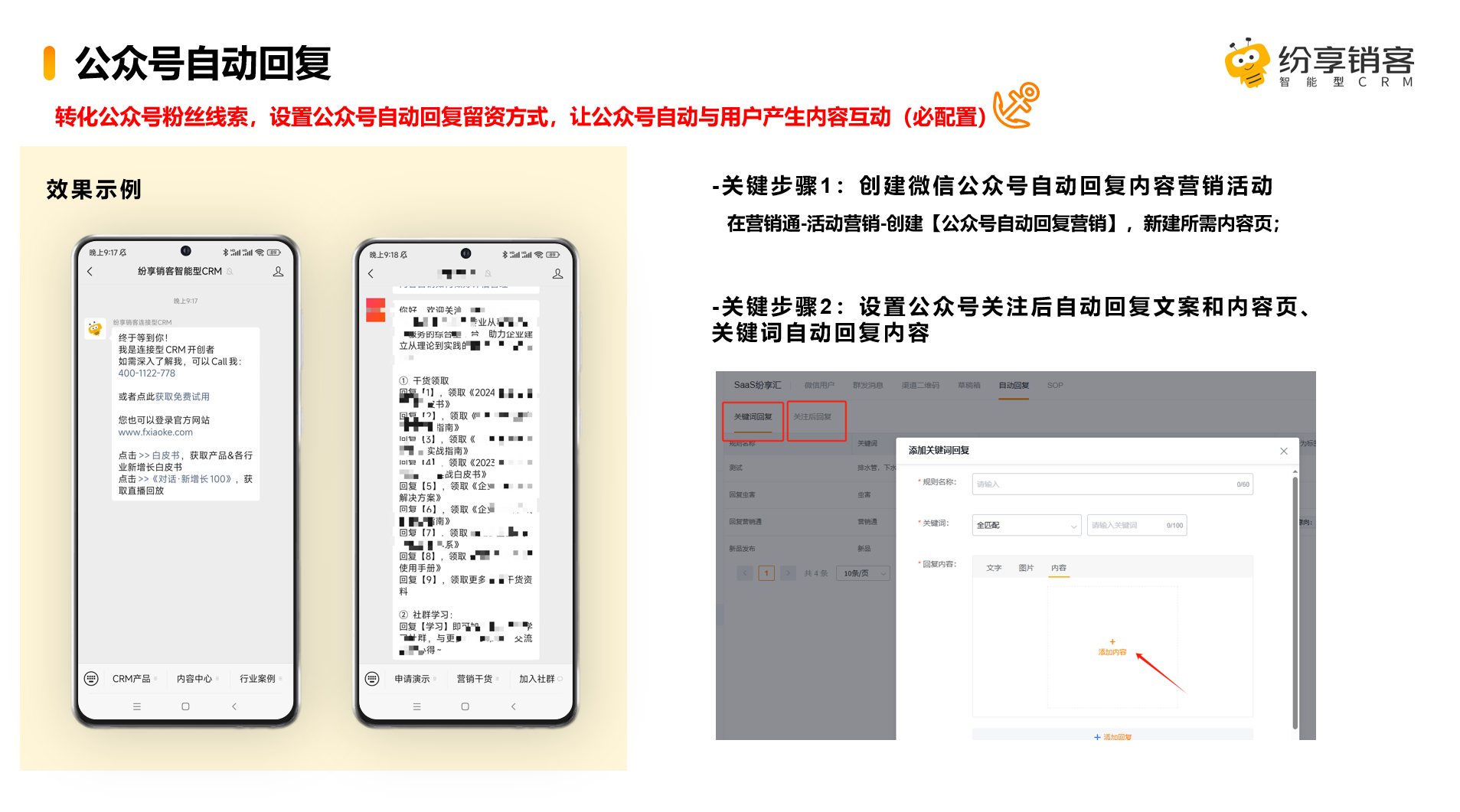 公众号关注后、关键词自动回复设置/更新:
