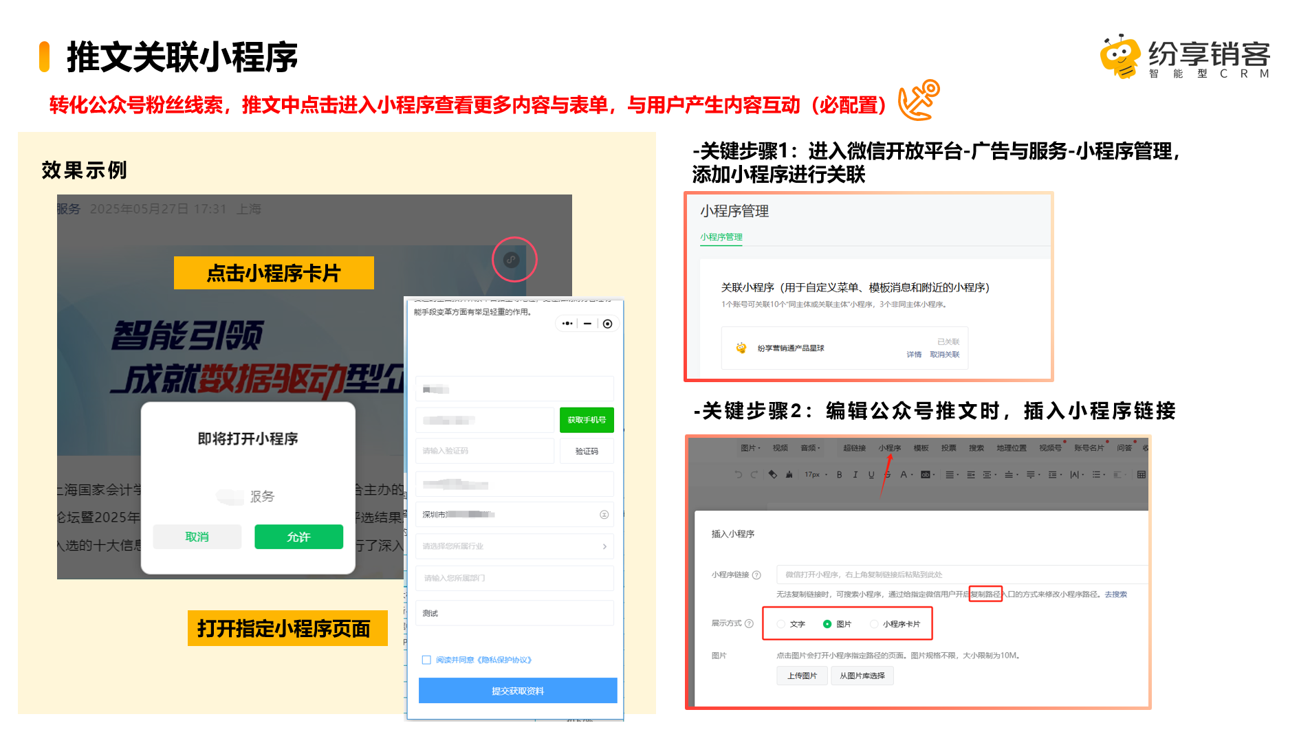 公众号推文中关联小程序内容设置: