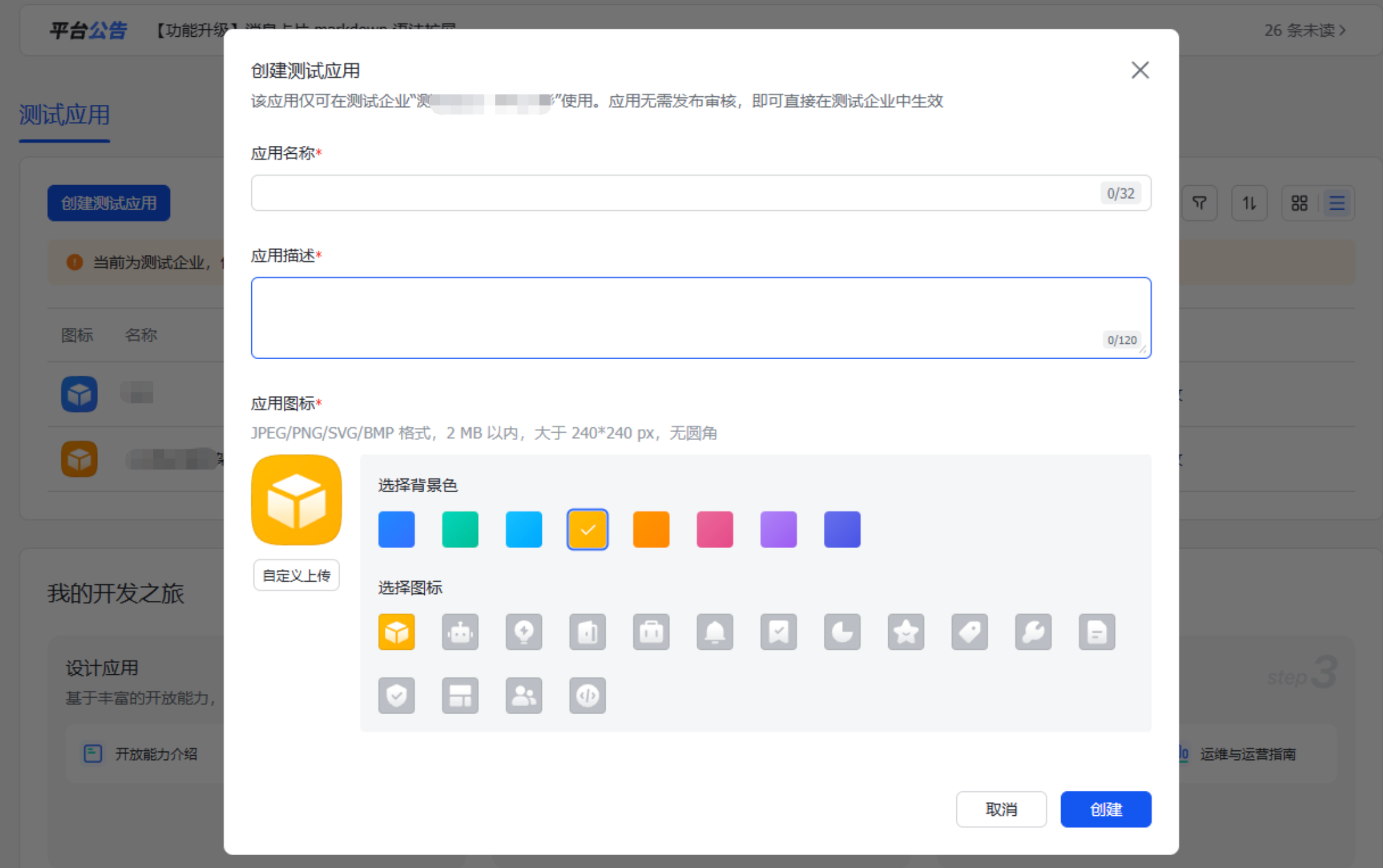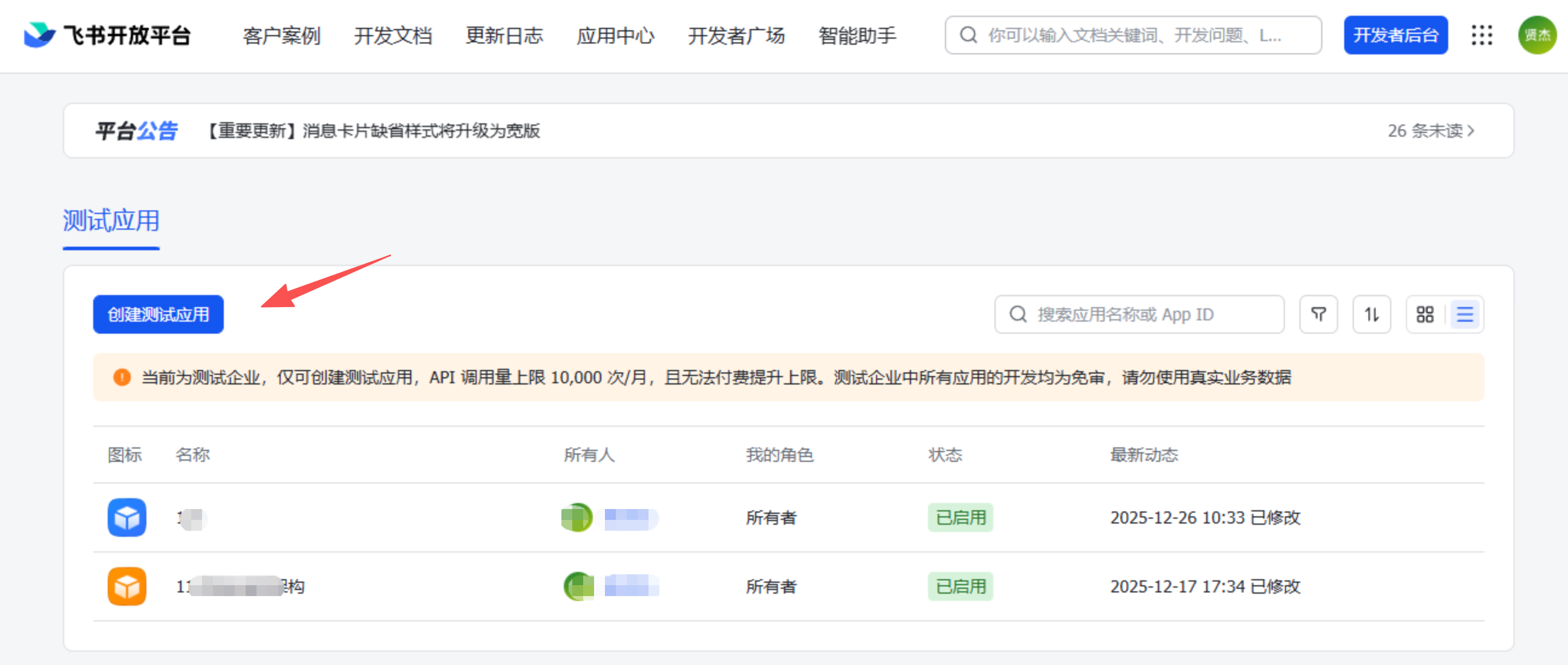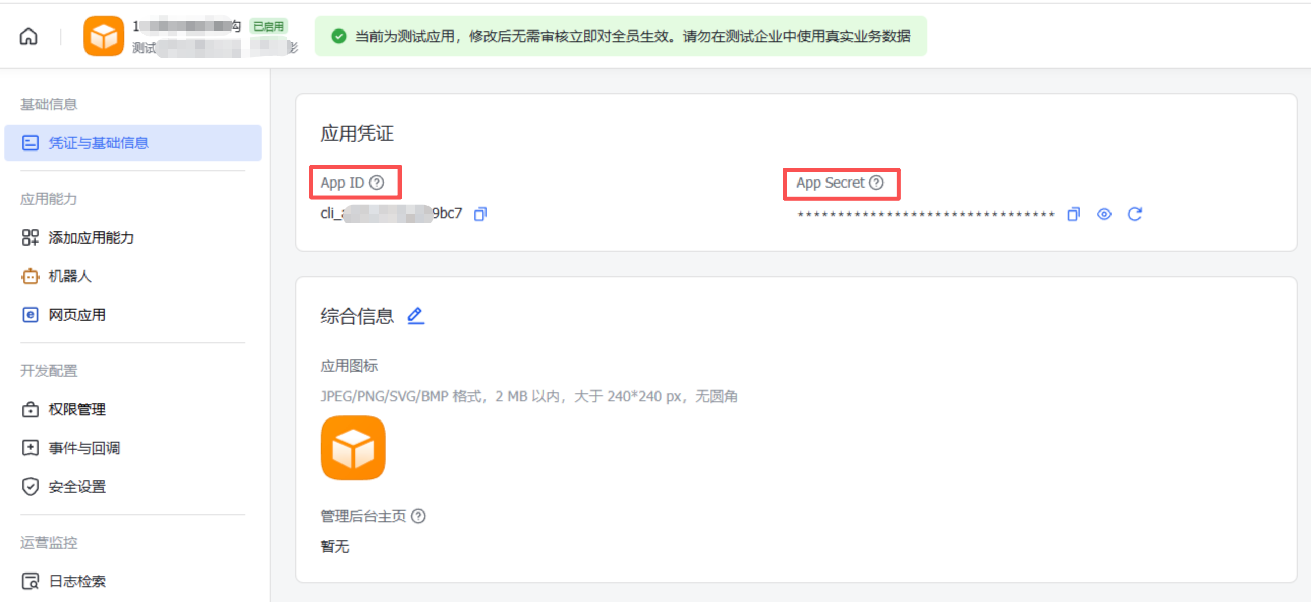 创建完应用后,进入该应用即可查到该应用的app_id和app_secret,复制保存好;