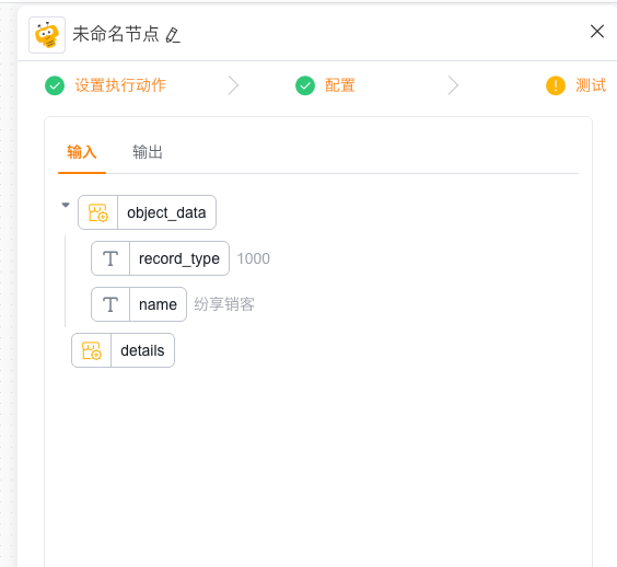 继续进入测试环境,可以根据配置的字段映射查看输入、输出的结果: